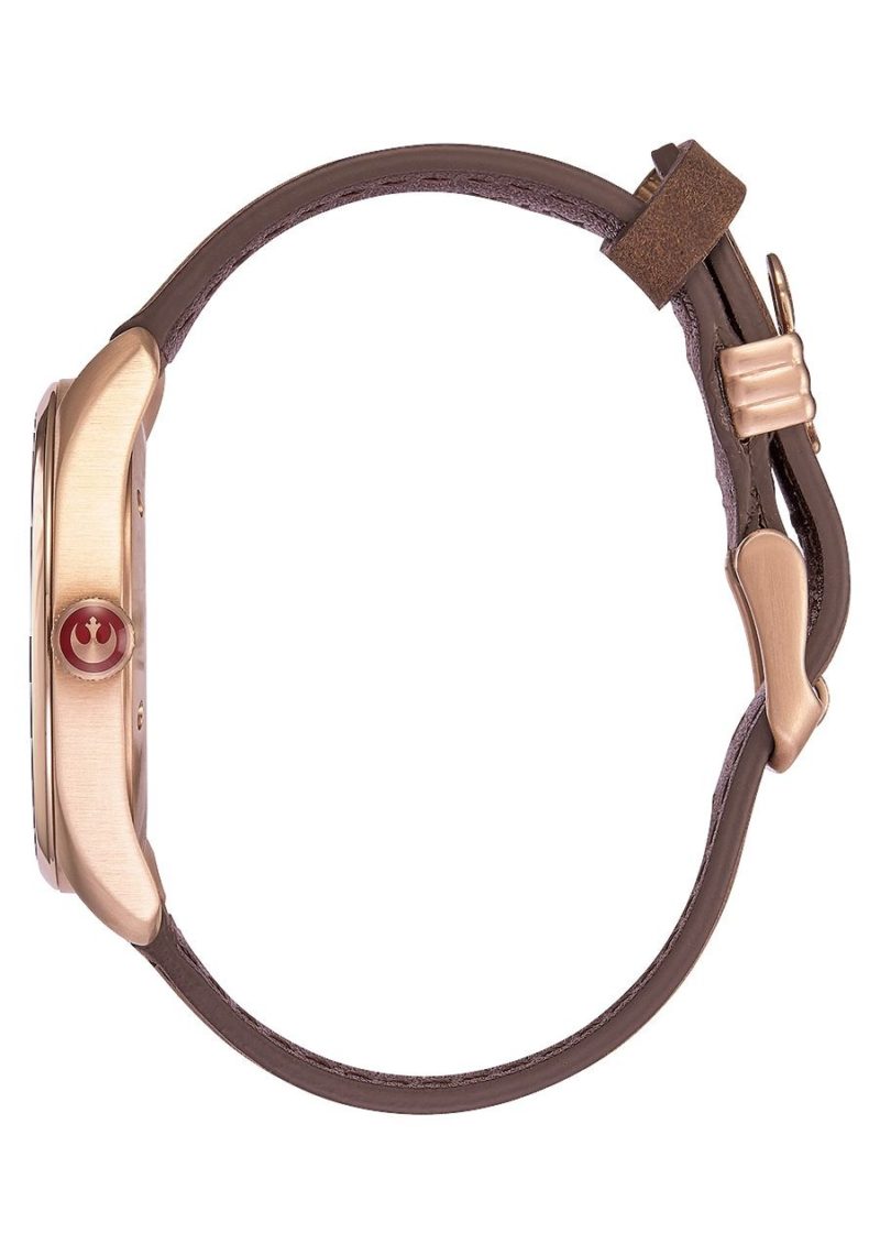 This beautiful Princess Leia watch is now available from Box Lunch. A recent addition to the Nixon x Star Wars watch collection, the design is inspired by the metal bikini costume from Return of the Jedi. The watch is the ‘Bullet’ style from Nixon, with a brown leather strap and rose gold toned watch face and hardware. I am so happy to see Princess Leia added to the Nixon collection.