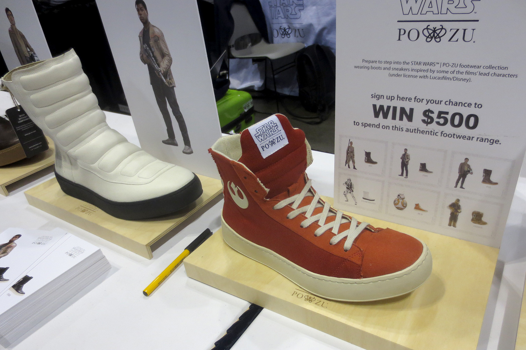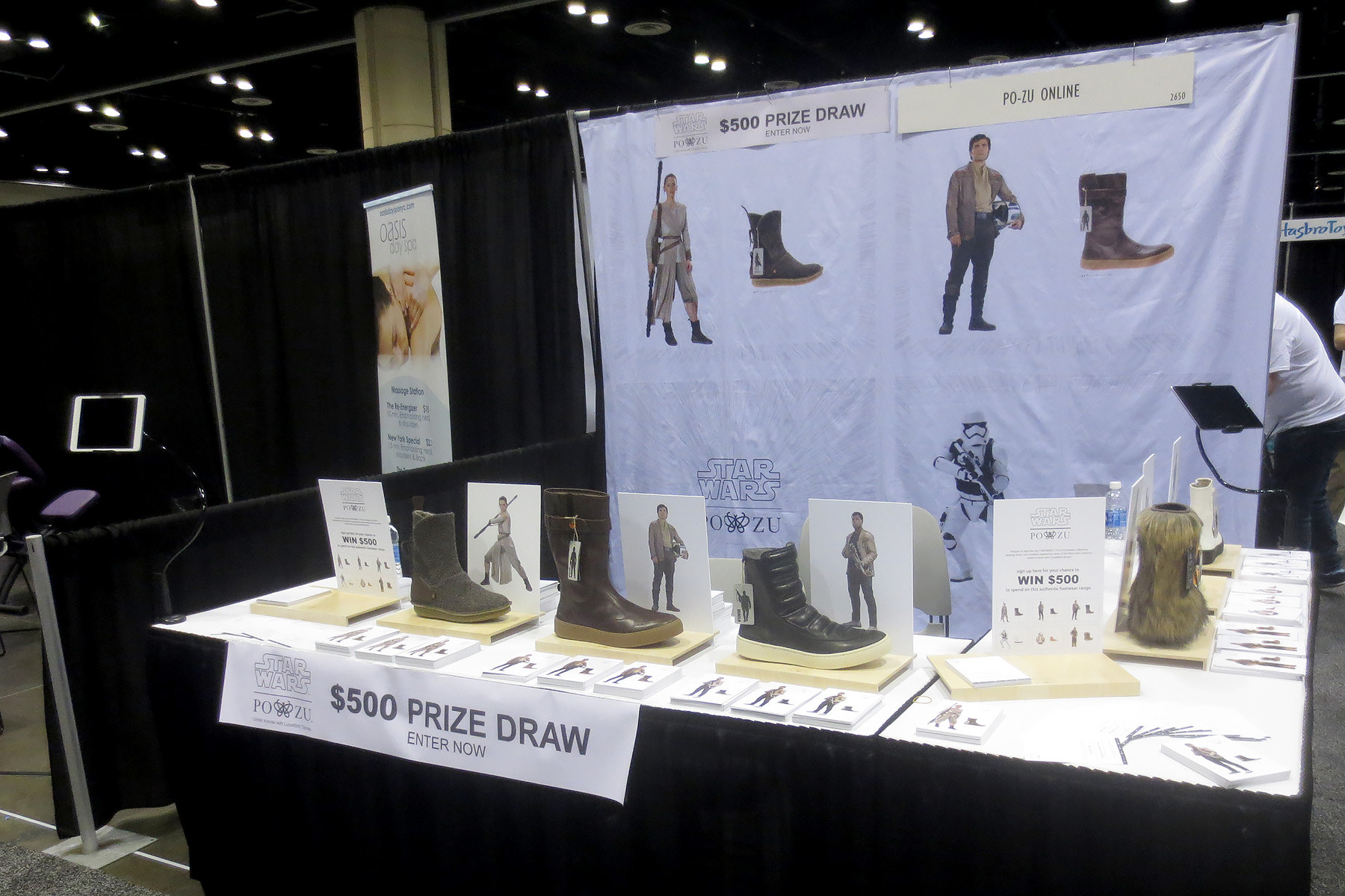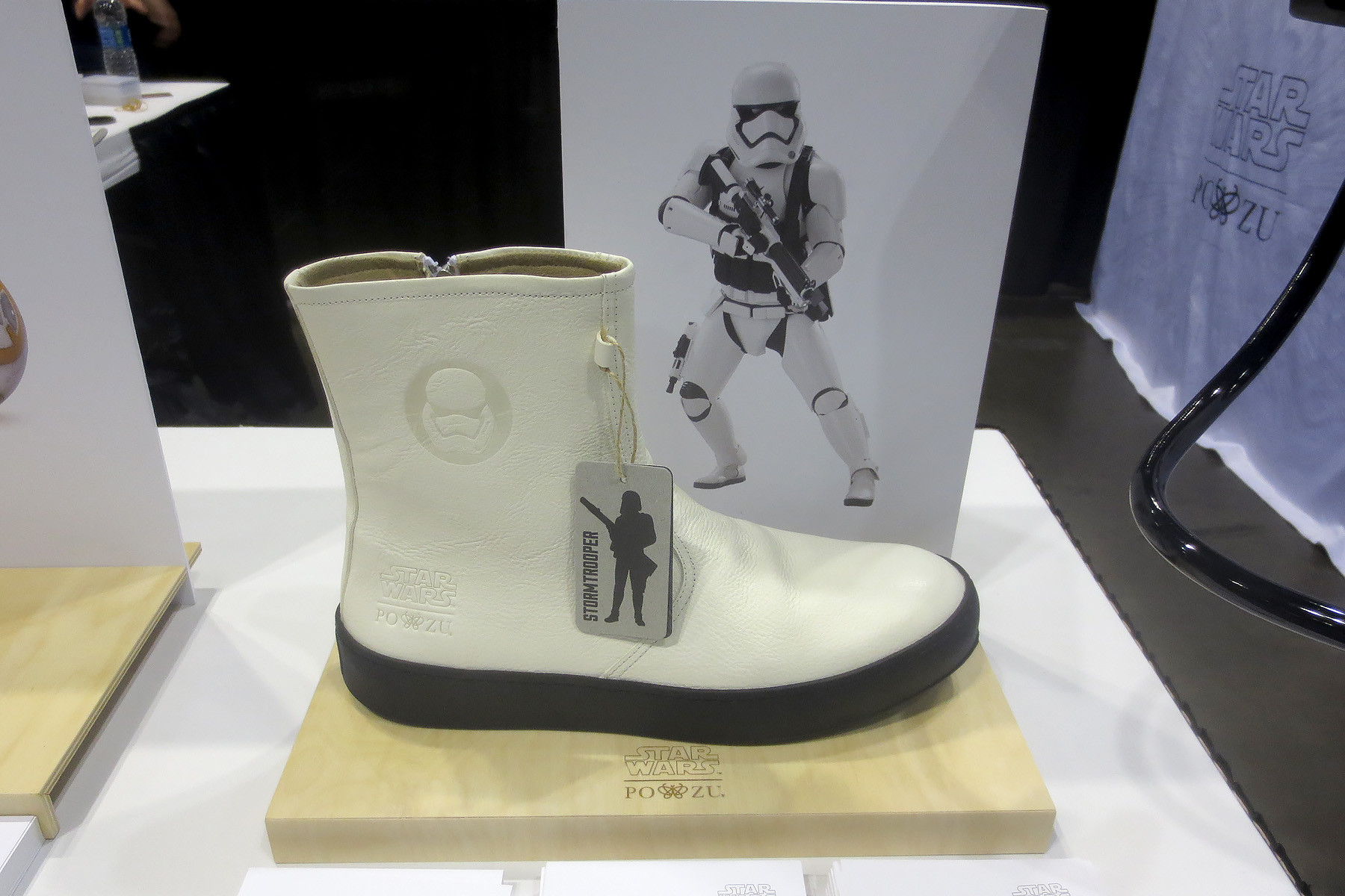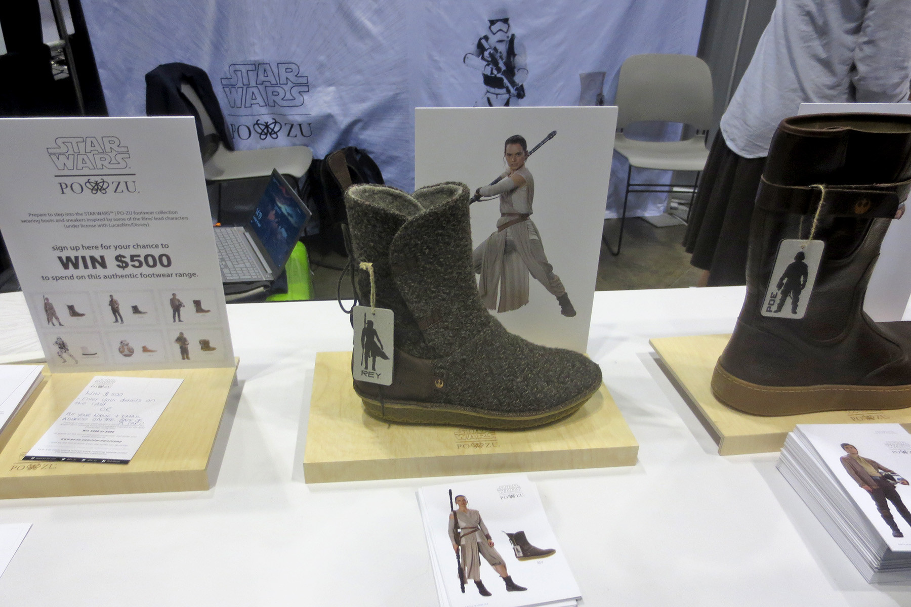 One of the highlights of the dealer hall was the Po-Zu Footwear booth. This was the first time the Po-Zu x Star Wars collection was available to view by the public, having been first revealed at a recent press event in London. The Po-Zu booth had 7 shoes on display – one for each of the new styles in the upcoming collection (while the Finn boot is available in 3 colours, only the black version was on display).