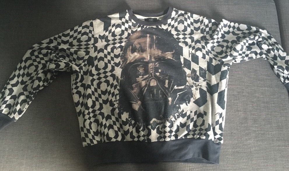 Today’s Mos Eisley Marketplace find is this women’s Preen by Thornton Bregazzi x Star Wars sweatshirt on eBay. Part of the original 2014 collection, this sweatshirt features the Preen Darth Vader artwork that was used throughout the collection, against a black geometric pattern. This sweatshirt is a size M, and is currently available with a ‘buy now’ price of US$350.00 (seller ships within the US). I love this particular design, but it’s not my size – hopefully another Star Wars fashion fan can find this fabulous sweatshirt a new home.