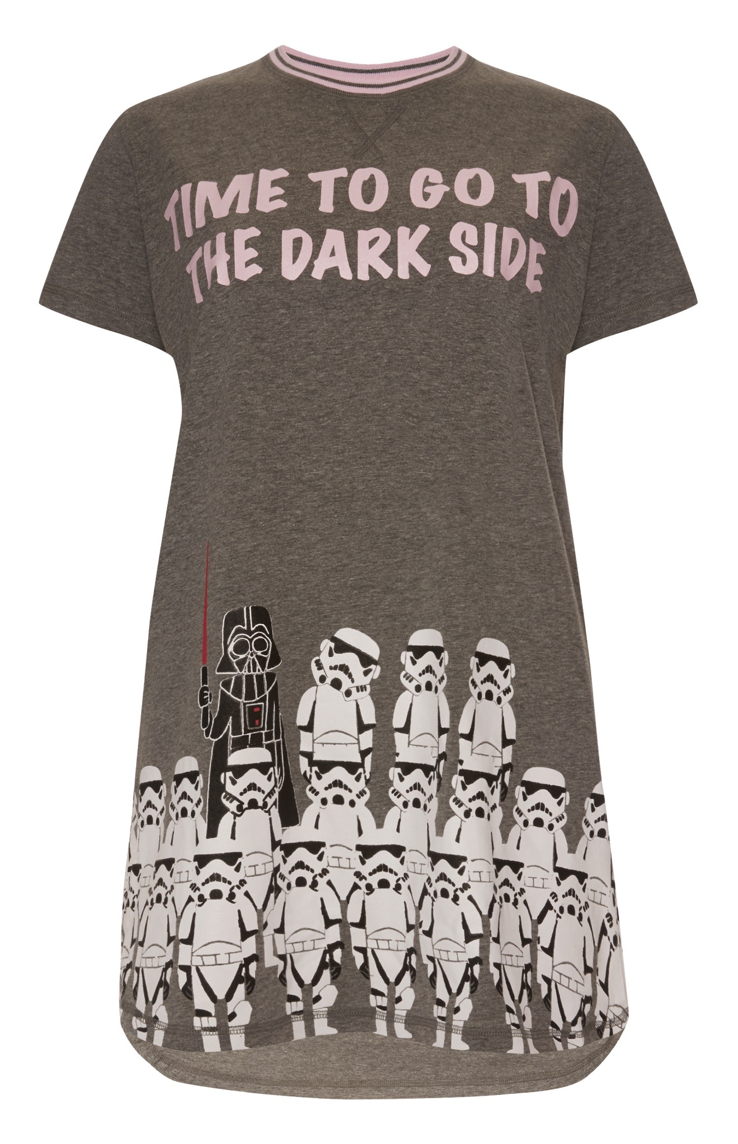 Primark UK has a new women’s Star Wars nightshirt available. The women’s grey nightshirt features the text ‘Time To Go To The Dark Side’, with a cute print of Darth Vader with Stormtroopers along the lower half. The nightshirt is priced at £7.00 each, and is sold at Primark stores in the UK and Europe. Primark does not sell online, but the eBay seller jetset3821 (aka ‘Once Upon A T-shirt’), has a wide range of sizes available on eBay – they can ship internationally.