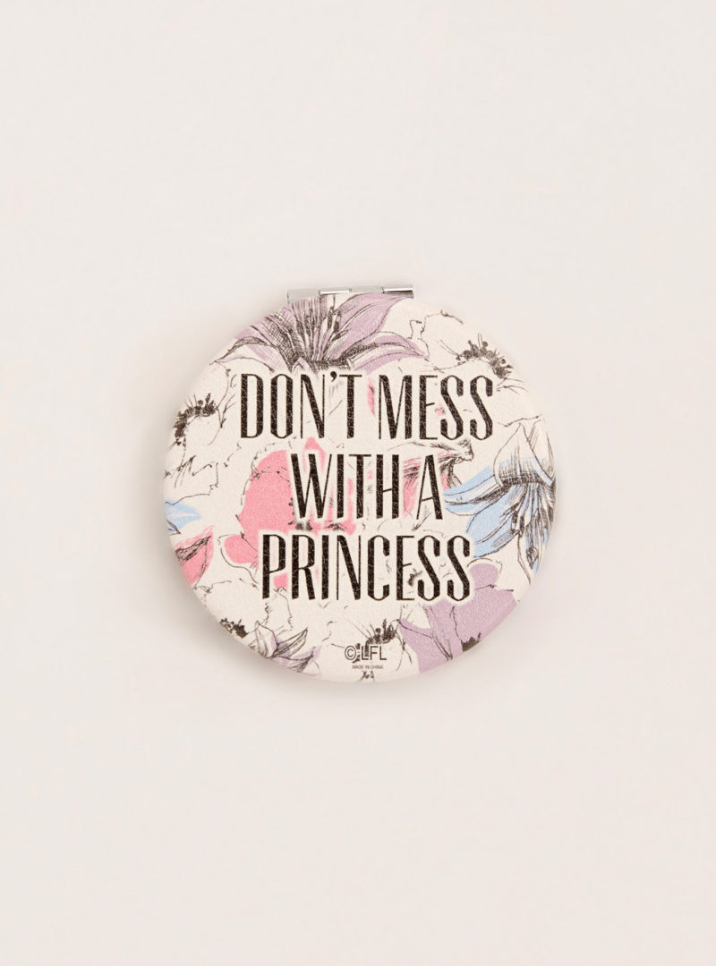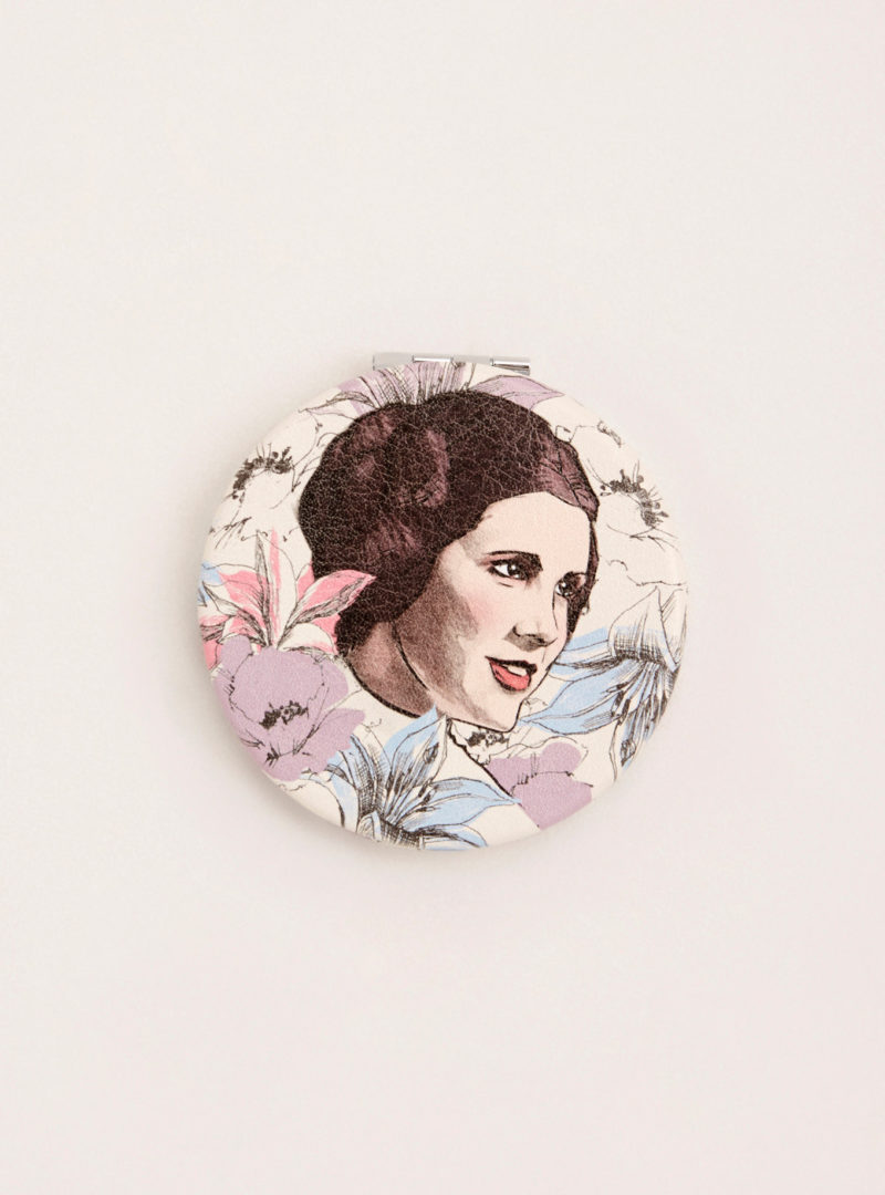 The back of this super sweet floral print compact mirror sends a clear message to any half-witted, scruffy-looking Nerf herder: “don’t mess with a princess.” A Princess Leia graphic gives some extra sass.