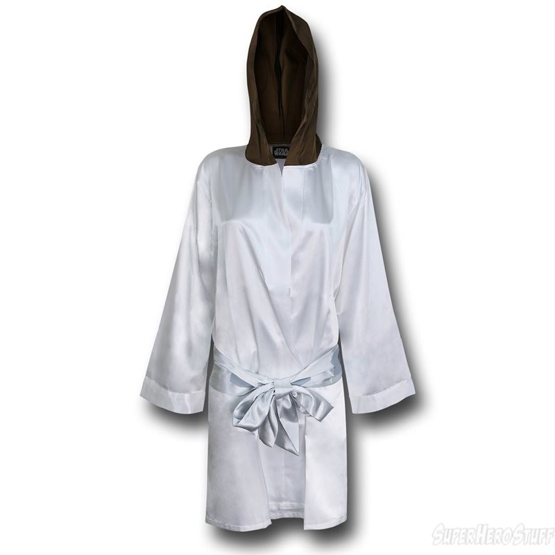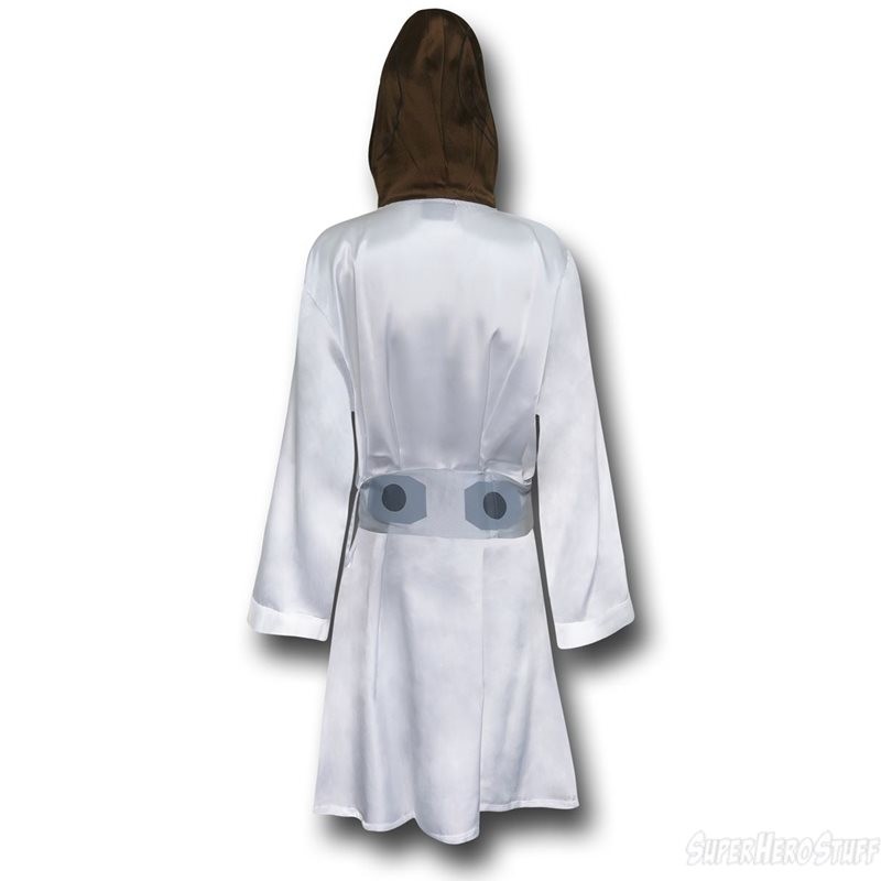 SuperHeroStuff has a new women’s Princess Leia satin robe available. The white robe is made from 100% polyester satin, and features an ‘everyday cosplay’ style design of Princess Leia’s classic white dress from A New Hope, with a brown hood with printed hair bun details, and a belt sash. The robe is ‘one size’, and is priced at US$39.99 each – SuperHeroStuff can ship internationally.