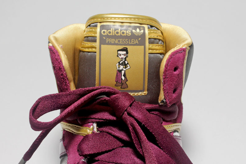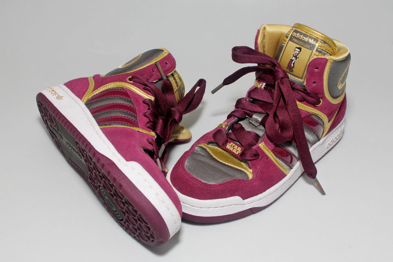 In late 2009 Adidas previewed their first Star Wars collection of shoes, but unfortunately only released one style in women’s sizes (I have small feet, men’s shoe sizes don’t go small enough for me). I was excited to see that they had chosen Leia’s metal slave bikini from Return of the Jedi as the theme, and I knew I had to have a pair.