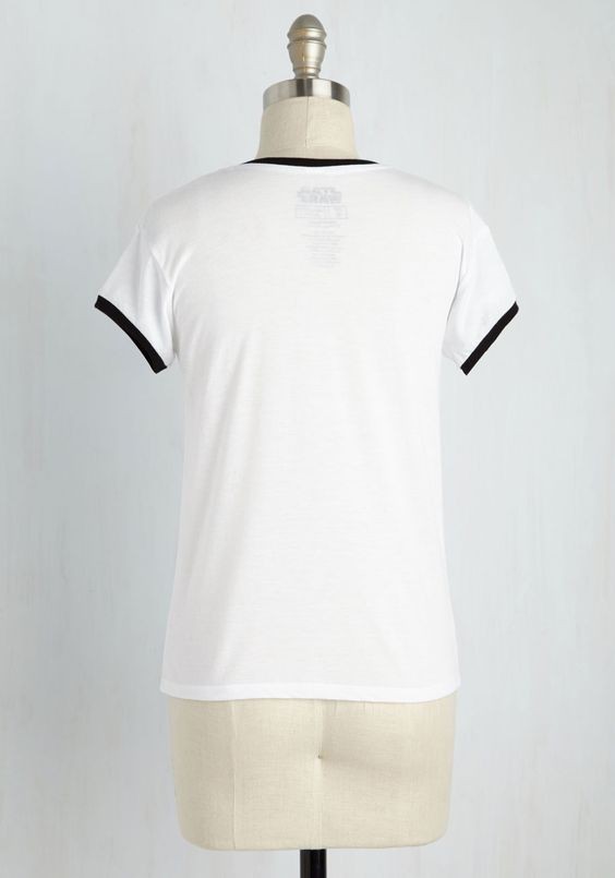 This white T-shirt expresses how little time Leia has for nonsense between becoming a Jedi Knight and leading revolutions. With retro, black ringer trim and a statement-making graphic, this style is ‘Alderaan-to’ something – that something being legendary chick power!