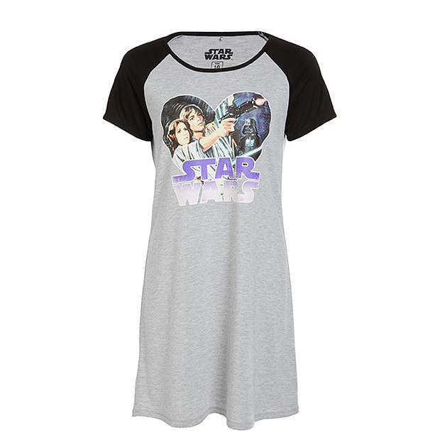 Australian store Target has two women’s Star Wars pyjamas available. The first is a t-shirt and short set, featuring the Star Wars logo – it is priced at AUD$29.00 per set. The second is a women’s nightie (sleep shirt) featuring Princess Leia, Luke Skywalker, and Darth Vader – it is priced at US$25.00 each. Target Australia only ships to addresses within Australia.