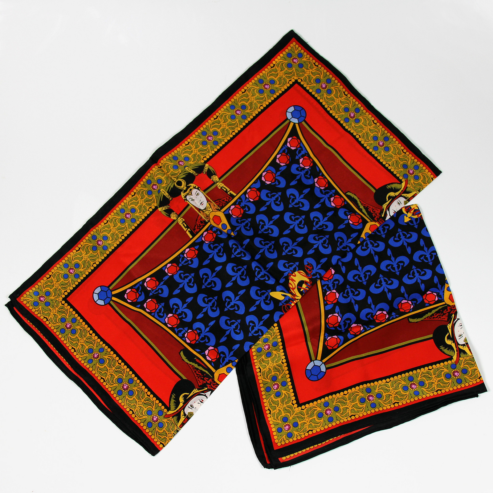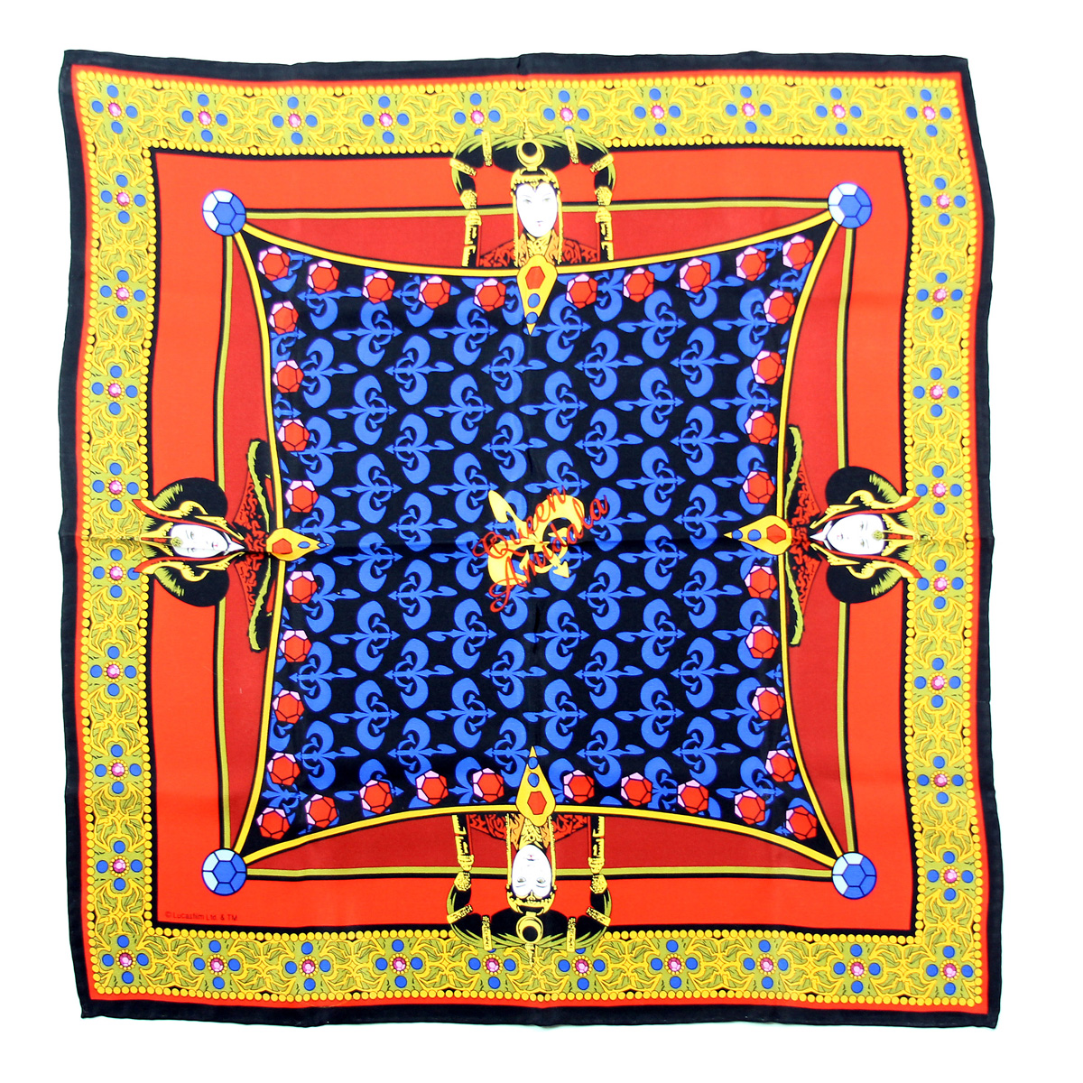 Since then I have been able to find a little bit more information about them via The Collectors Archive – they were made by Ralph Marlin in 1999 for the release of Episode 1, together with a wide range of Star Wars men’s ties. They measure approx 50cm along each edge, made of a lovely soft thin silk. Unfortunately I don’t know their original retail price, or how many were made, but they are so very pretty. Below are photos of my scarves – they feature the Naboo symbol and two different portraits of Queen Amidala (her ‘senate’ gown and ‘throne room’ gowns).