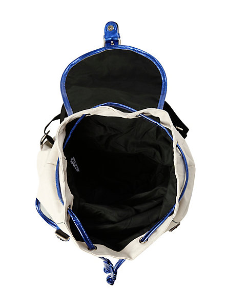 Hot Topic has added a new R2-D2 bag to their website. I first spotted this bag around Celebration Anaheim, so it’s great to see it show up on-line. At the convention dealers were selling the bag for US$60 – but Hot Topic’s price is only US$34.50! That’s a much better price, and Hot Topic can ship internationally too. The slouch backpack features a drawstring main compartment, with two front pouches and adjustable shoulder straps.