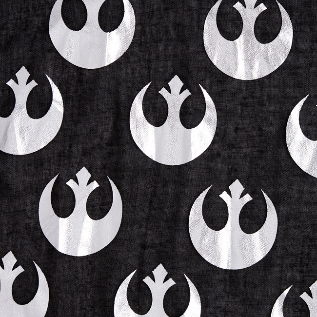 Worn as a scarf, the pattern is shiny yet subtle enough to distract passing Stormtroopers and leave them none-the-wiser. “Nope, not the rebel spy you’re looking for!” And when you’re among friends, you can wear it as a wrap and let your rebel flag fly. In fact, you could use it as a Rebel Alliance flag, too – if you really wanted to. We prefer to keep the shiny fun fabric on our person, but hey, you do you!