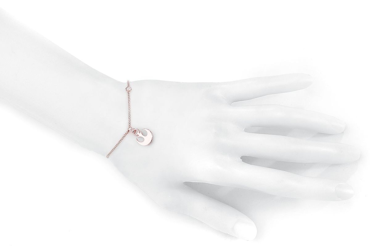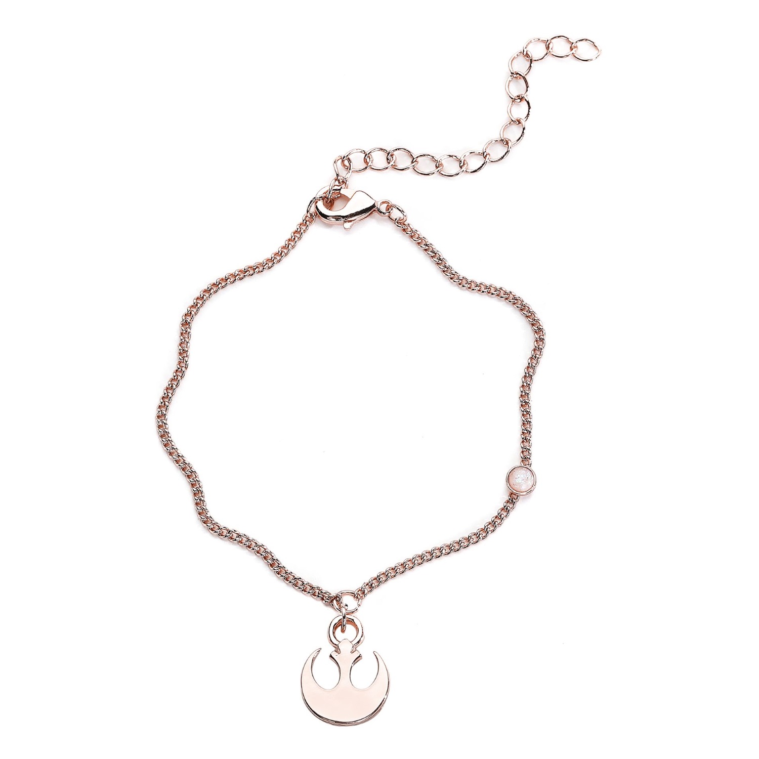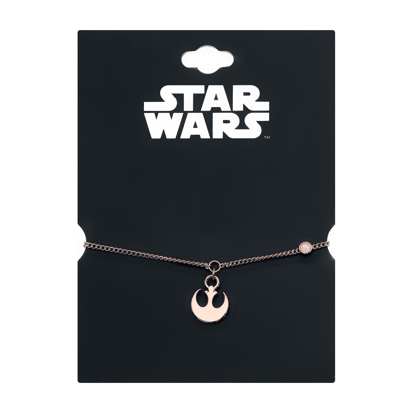 This Star Wars Rebel Alliance Symbol bracelet is available at EMP Online. The warm-toned chain bracelet features a cut-out Rebel Alliance ‘starbird’ symbol charm, and a small rhinestone gem accent on the chain. The bracelet is adjustable, with a lobster claw-style clasp and length of wider adjustment chain (length approximately 15.5cm to 22cm).