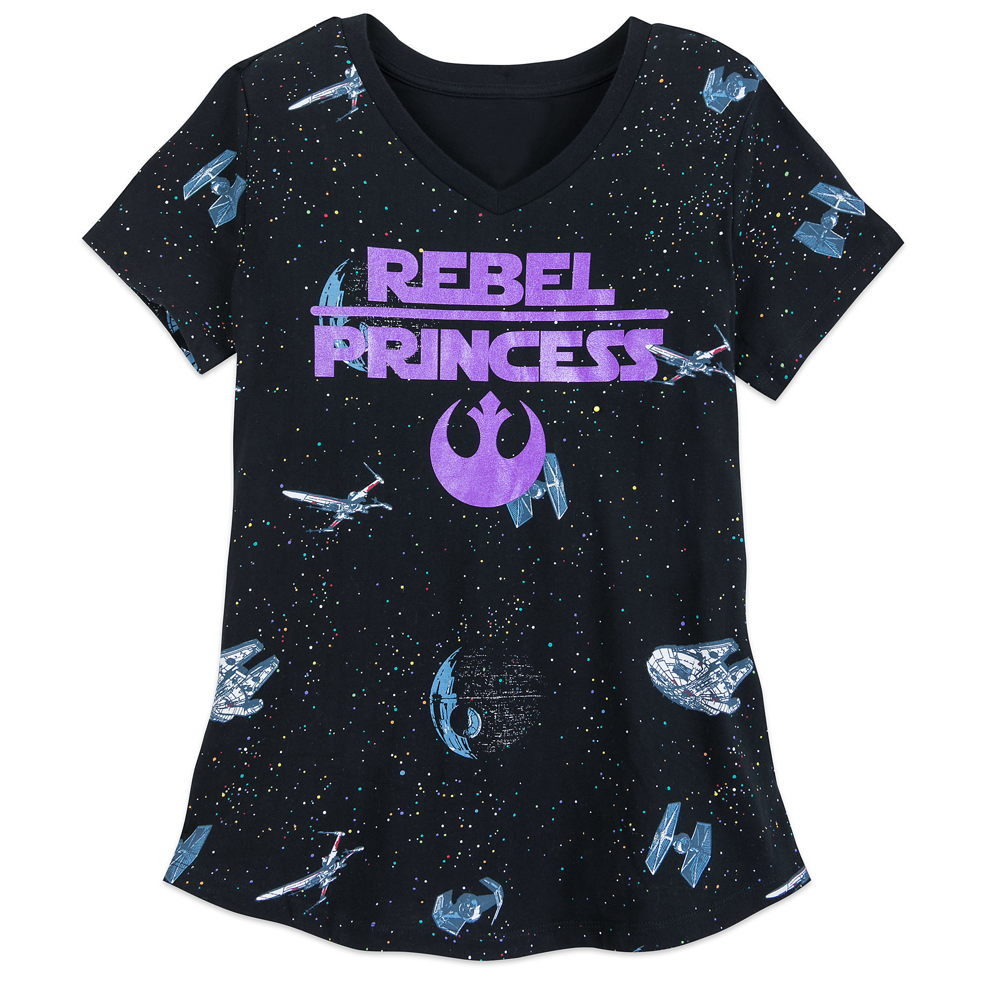 This women’s Star Wars Rebel Princess sleepwear set is now available at Shop Disney. Part of the new Star Wars family sleepwear collection, the women’s pyjama set includes a t-shirt and jogger-style pants, which both feature an all-over print of a Death Star battle print against a starry sky. The front of the t-shirt features an additional print of the text ‘Rebel Princess’, in purple – check out the full Star Wars family sleepwear collection.