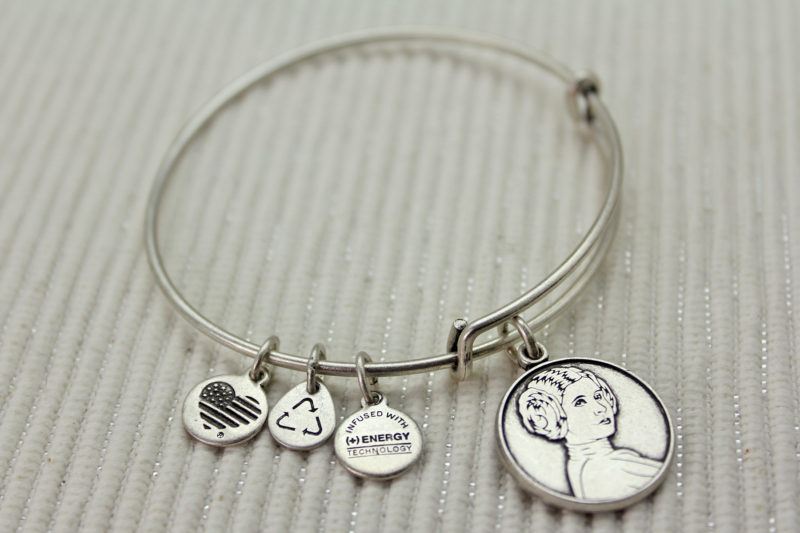 As well as the main Leia charm, the bracelet also includes 3 small tag charms – ‘Made in America With Love’ symbol, ‘Recycle’ symbol, and ‘Infused With Positive Energy’ text. The ‘Recycle’ charm features the same design on both sides, the ‘Made in America’ charm has the patent number on the back, while the ‘Infused with Positive Energy’ charm has the text ‘Alex and Ani’ on the back.