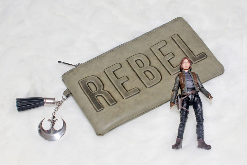 While inspired by Rogue One, this clutch works for any Rebel Alliance themed outfit. It has always been easier to find ‘Dark Side’ themed handbags (Darth Vader, Boba Fett), so it was very exciting to see some great ‘Light Side’ Rebel Alliance themed fashion released for Rogue One. Now we just need more Jedi themed handbags!