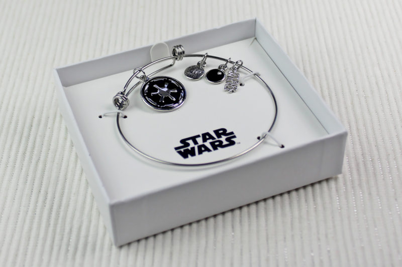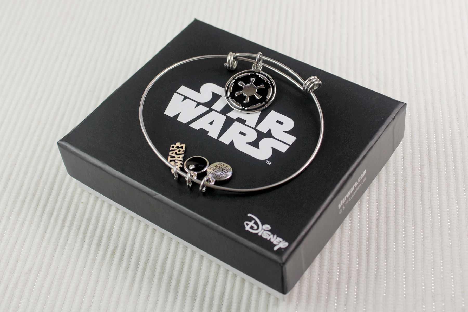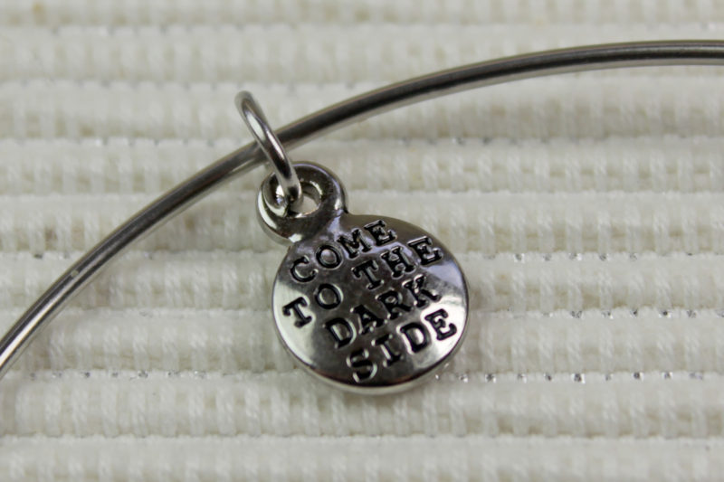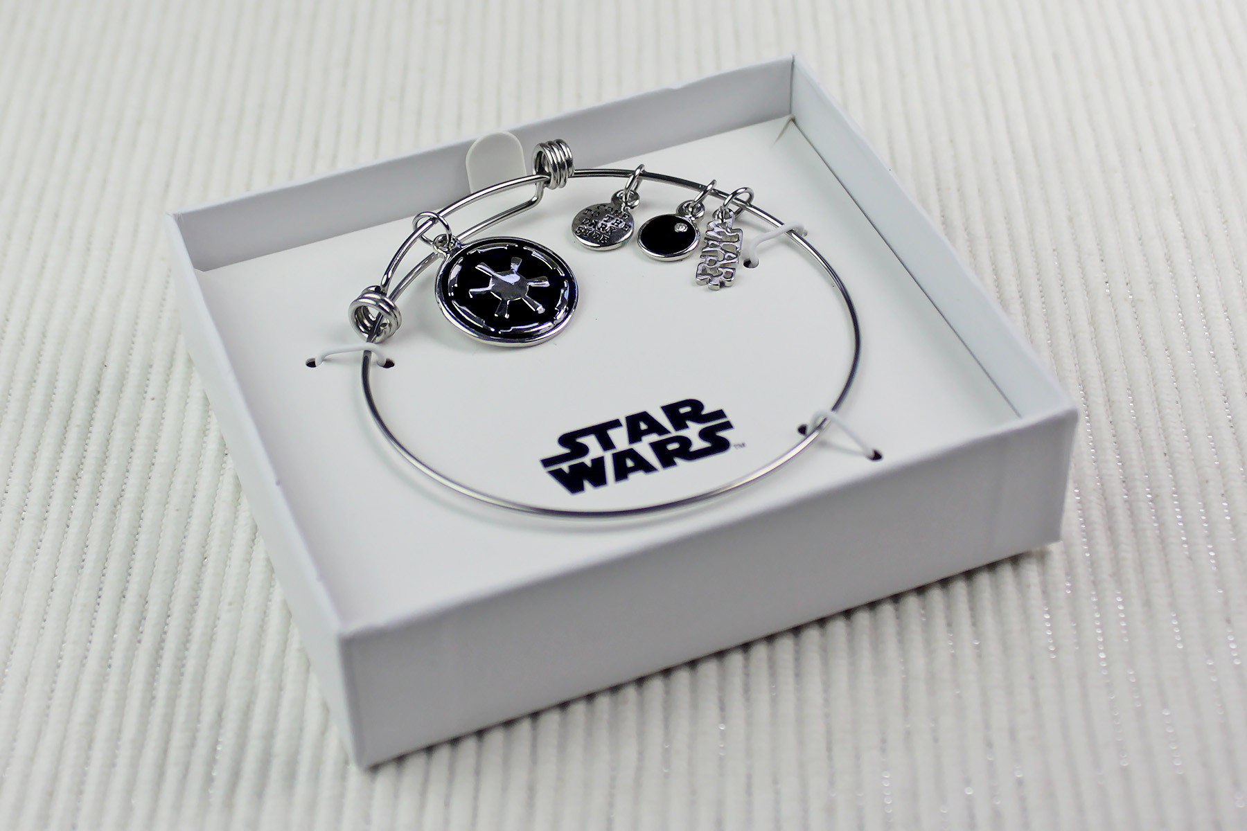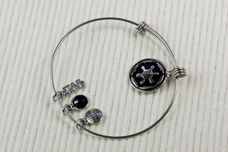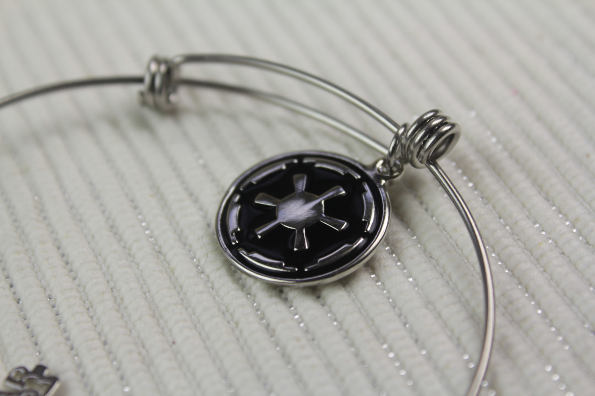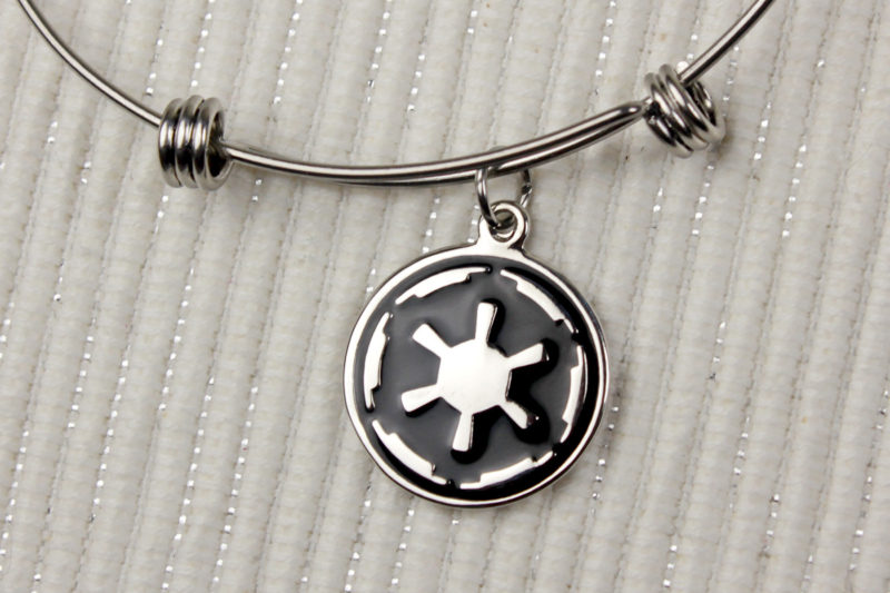 Today’s review features the Body Vibe x Star Wars Imperial symbol charm bracelet. Featuring the expandable bracelet style first made popular by Alex And Ani, the bracelet features an Imperial ‘cog’ symbol charm, and 3 smaller accent charms. I am a big fan of bracelets, so I’m always looking for new designs to add to my collection – the classic Imperial theme goes with so many outfits.