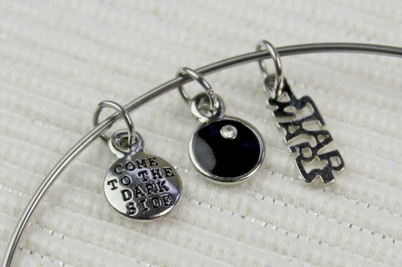These additional charms really add to the theme of the bracelet – I especially love the cute little Death Star charm, accented with black enamel and a single clear rhinestone. The 2 circular charms measure approximately 9mm across, while the cut-out Star Wars logo charm measures approximately 13mm by 5.5mm. The Alex And Ani x Star Wars bracelets feature generic additional charms, so I really appreciate the full Star Wars theme of all the charms on this bracelet.