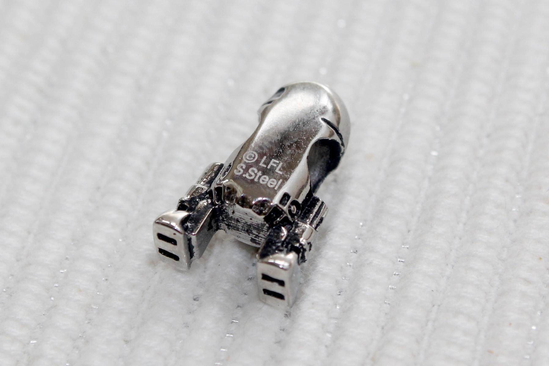 The fine detail of the sculpt is accented with black antiquing, which coordinates nicely with the other charms in the range. The level of detail is great,  the sculpt even includes details on the underside of R2-D2’s feet. It is a little bit of a shame that the back is flat, to allow space for the etched Lucasfilm copyright text. I understand the need for it on licensed items, but it does distract a little from the cute design.