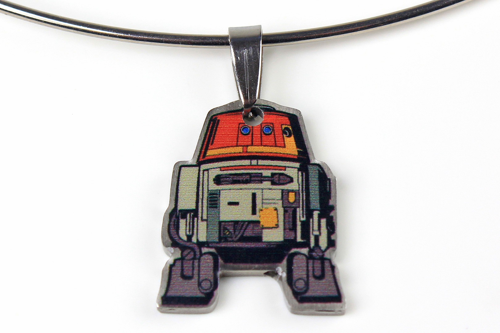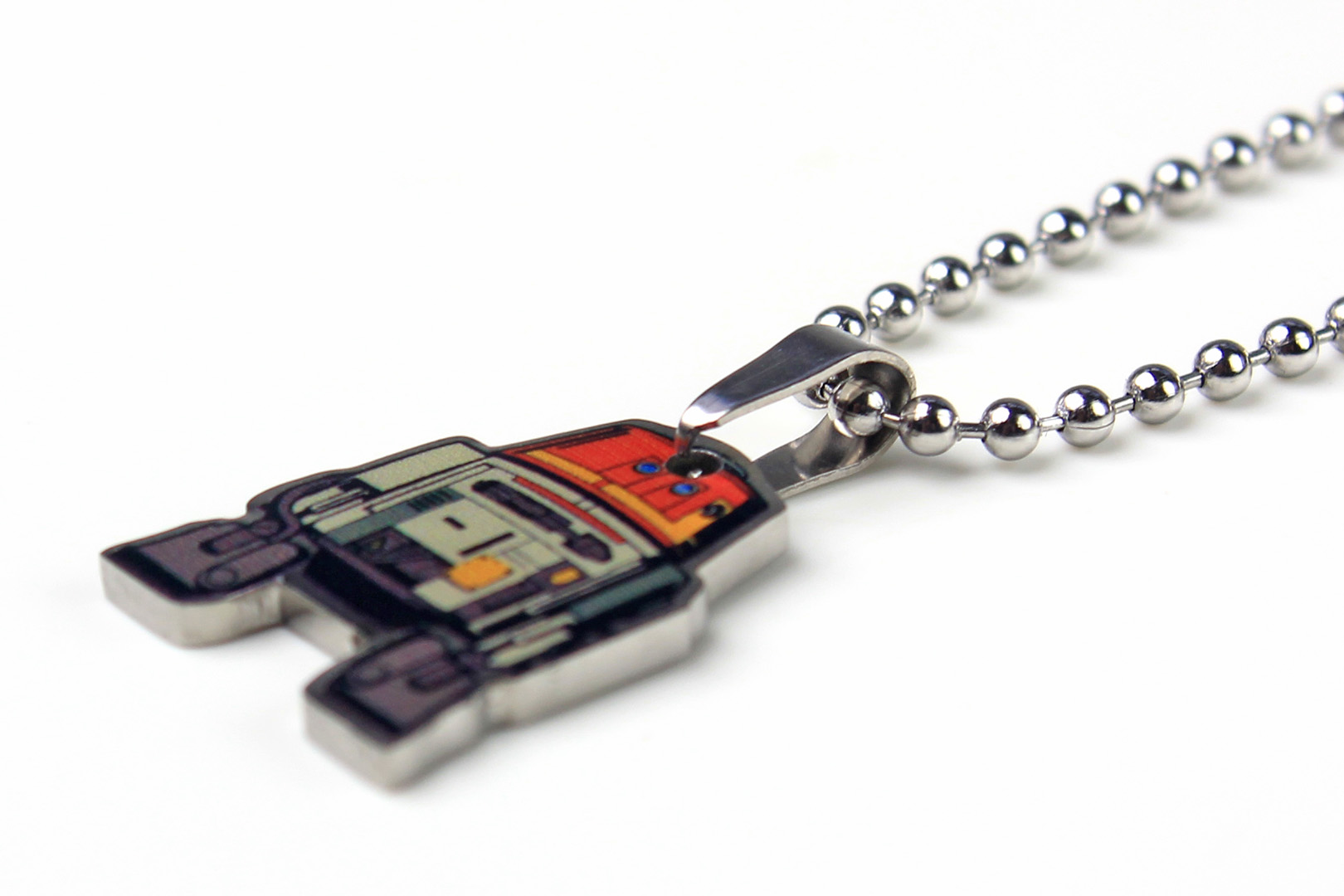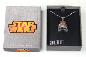 I already have a few pieces from the Body Vibe x Star Wars jewelry collection, and as a big Star Wars Rebels fan, I was excited to spot this ‘C1-10P’ necklace in my regular searches. So far I have only found it at Amazon, where it retails for US$15.00 (unfortunately they don’t ship this item outside the US). It is listed as a ‘boys’ necklace, which is disappointing – I would of course prefer to see an item like this marketed for ‘kids’, as we all know girls (and women) love Star Wars just as much – the Amazon page even uses the silhouette of a girl to show the necklace’s scale!