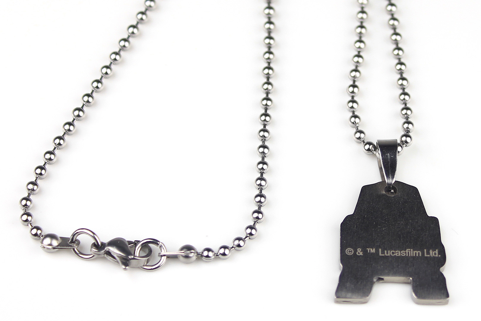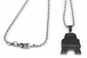 The necklace comes packaged in a branded gift box, the same as other necklaces in the range. The pendant measures approximately 23mm high, and 19mm wide (not including hanger). The back is plain except for the standard copyright text etching ‘(c) & tm Lucasfilm Ltd.’. The front image of Chopper is nicely done, with a layer of resin giving a glossy finish. The image has very slight printing lines, no doubt an aspect of creating the image on the stainless steel pendant, and not evident unless viewed very closely.