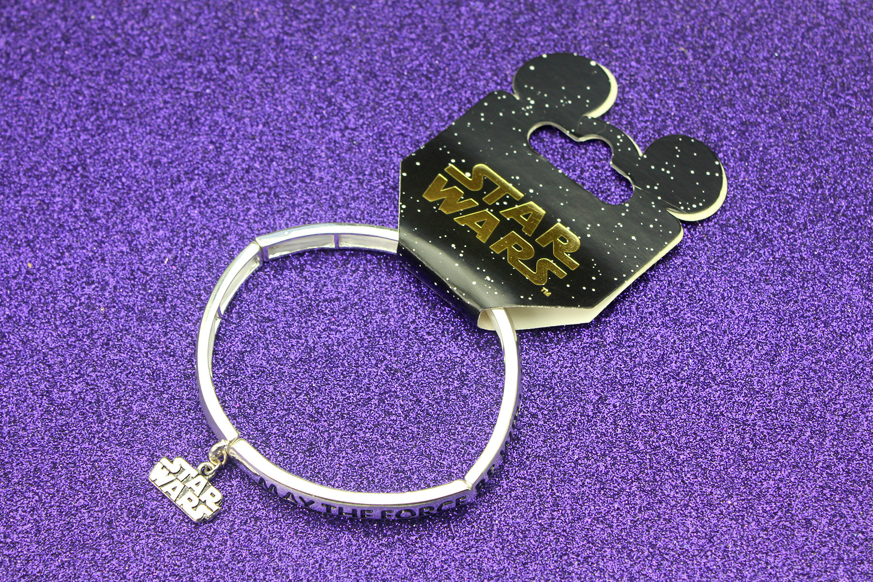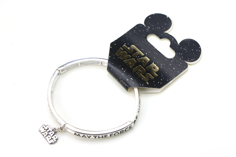 Today’s review features the Disney x Star Wars ‘May The Force Be With You’ bracelet. During my visit in January, the bracelet was priced at US$16.99 each (plus tax), in Disney’s ‘tan’ jewelry price category. Neither the bracelet or the tag carry any mention of the material the bracelet is made from, so I’m not sure. While this bracelet isn’t available from the online Disney Store, it does show up on eBay from time to time – for example, there is currently one available from this seller.