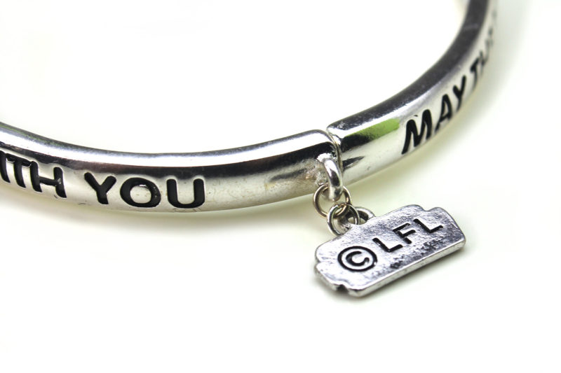 Between two quote segments, the bracelet has a small charm of the Star Wars logo. The logo is accented with black antiquing, and the charm is stamped with ‘(c) LFL on the back, noting this is a licensed item. I really like the touch of the small charm – it adds that great charm bracelet ‘jingle’ sound. The charm is light, and doesn’t hang too long, so it doesn’t ‘bang’ against your wrist like some heavier charms can. The charm measures approximately 15mm by 7mm (not including the hanging rings).
