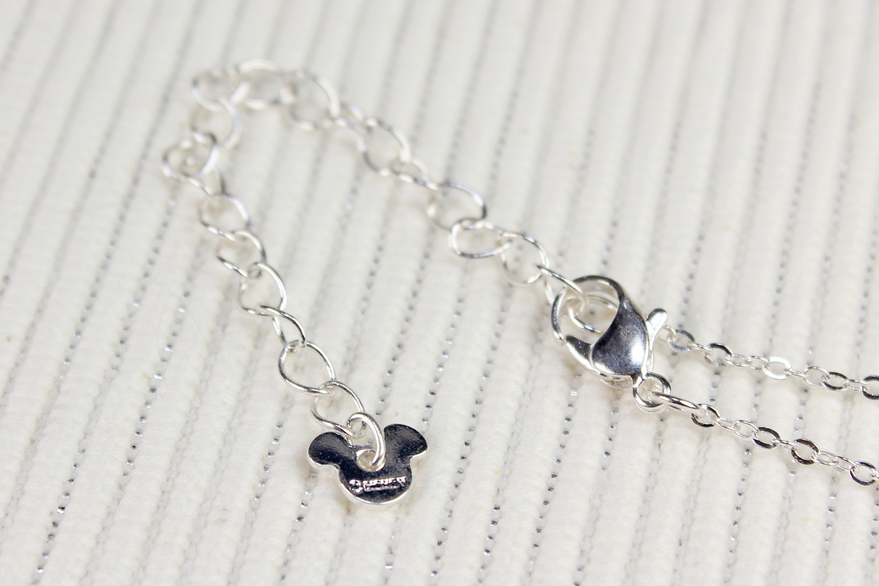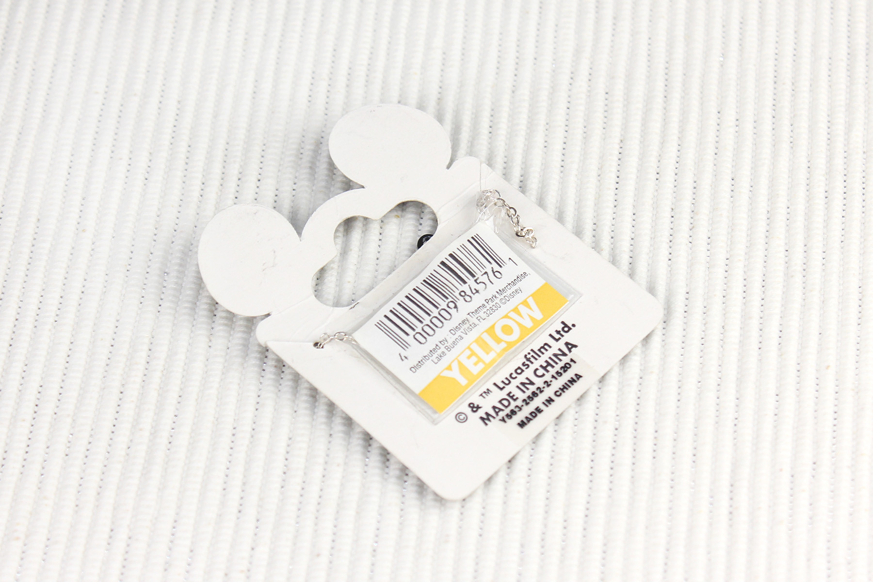 The chain of this necklace is one of the smallest link chain I have seen on Star Wars necklaces, it is very fine and ‘dainty’. The adjustment chain has much larger links, and ends with a small silver-tone ‘Mickey ears’ shaped pendant. The necklace clasp is a silver-tone ‘lobster’ style clasp.
