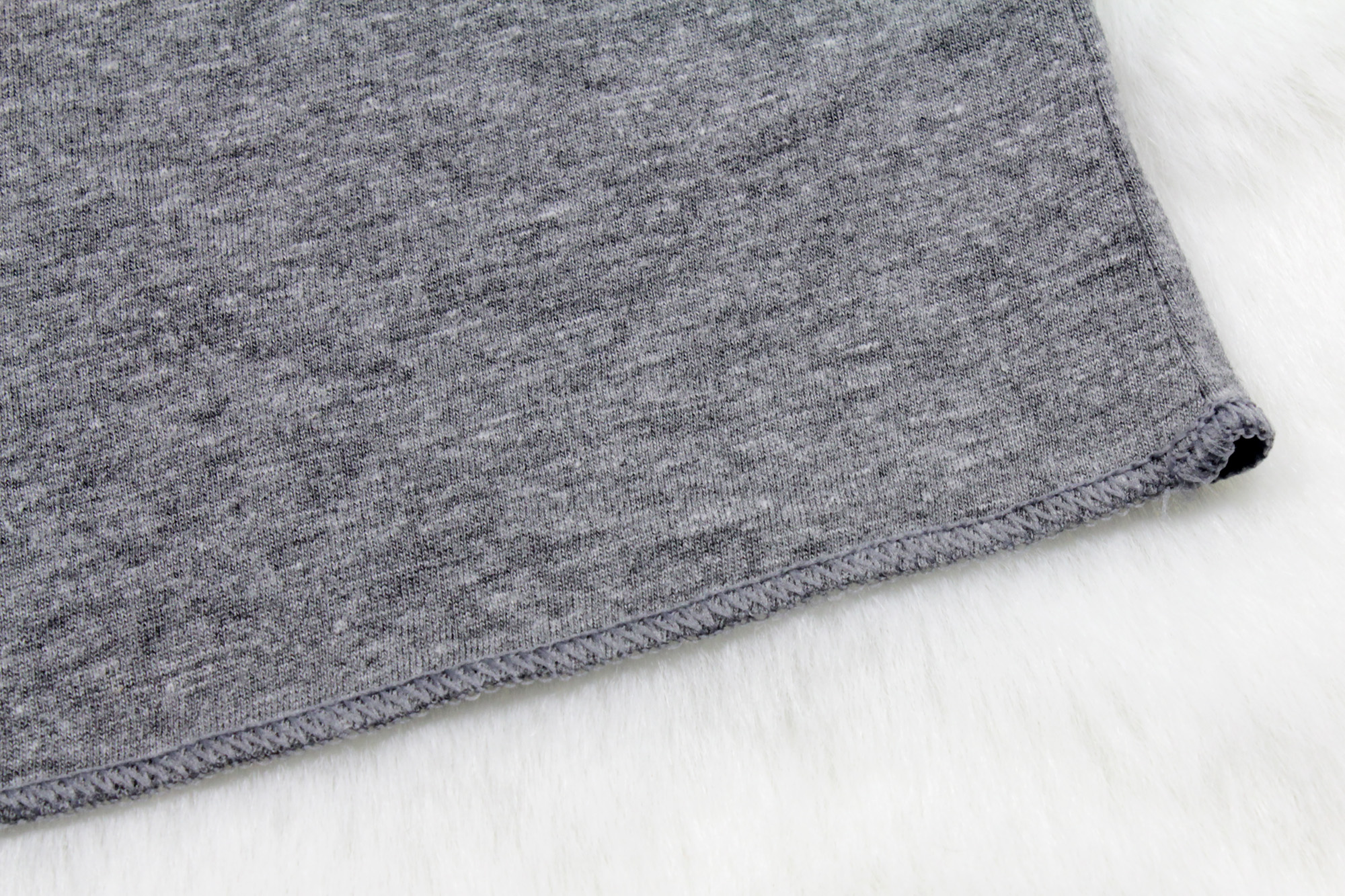 The neckline and armholes are edged with a small row of overlocking (serging), in a colour matched grey thread. The edges are not turned over and top stitched like standard t-shirts etc – this gives the tank top a light feel, as the edges keep the softer feel of raw fabric. Knit fabric like this does not fray like woven fabrics, so it doesn’t even need to be seamed (I have some Star Wars tank tops that do indeed have raw edges as part of a vintage/weathered style), but it keeps the edges looking nice, and provides a bit more reinforcement in areas like the shoulder straps.