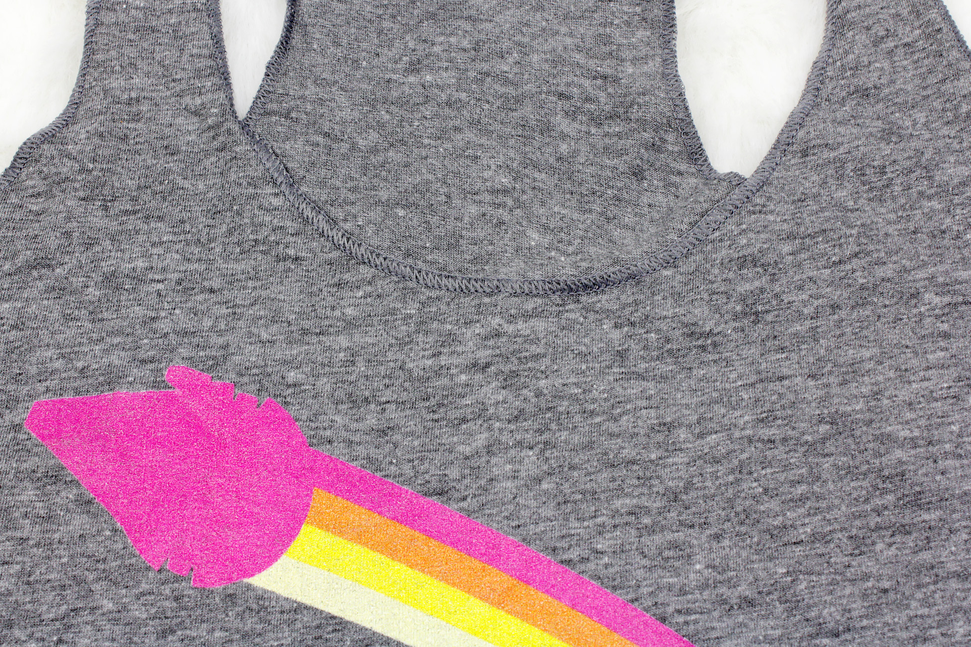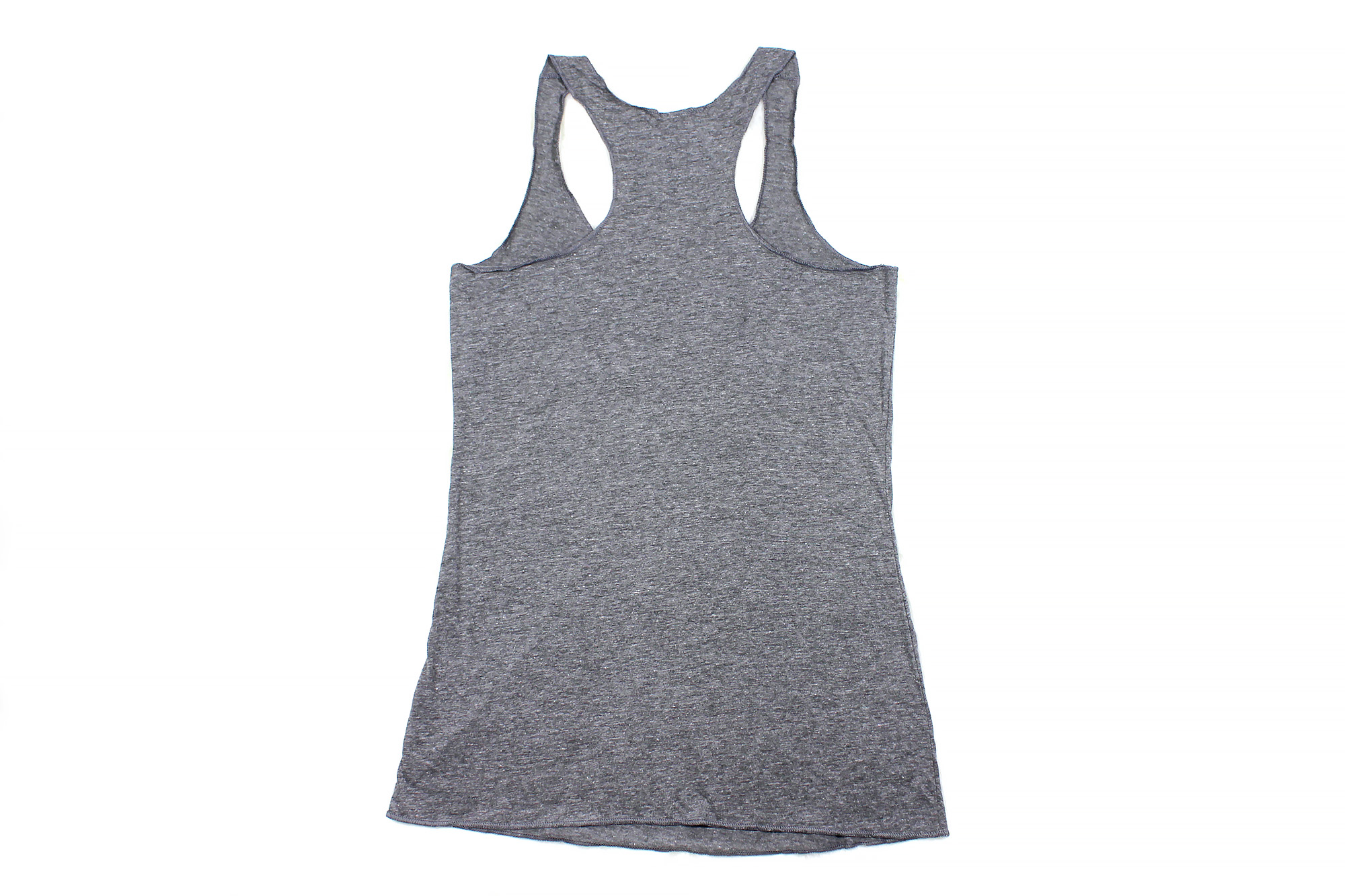 The back of the tank top features a racer back-style shape, where the shoulder straps are shaped towards the center of the shoulder blades. This shape keeps the slender shoulder straps from slipping down your shoulders, and is perfect for wearing over a sports bra (or a bra with the shoulder straps crossed over at the back).