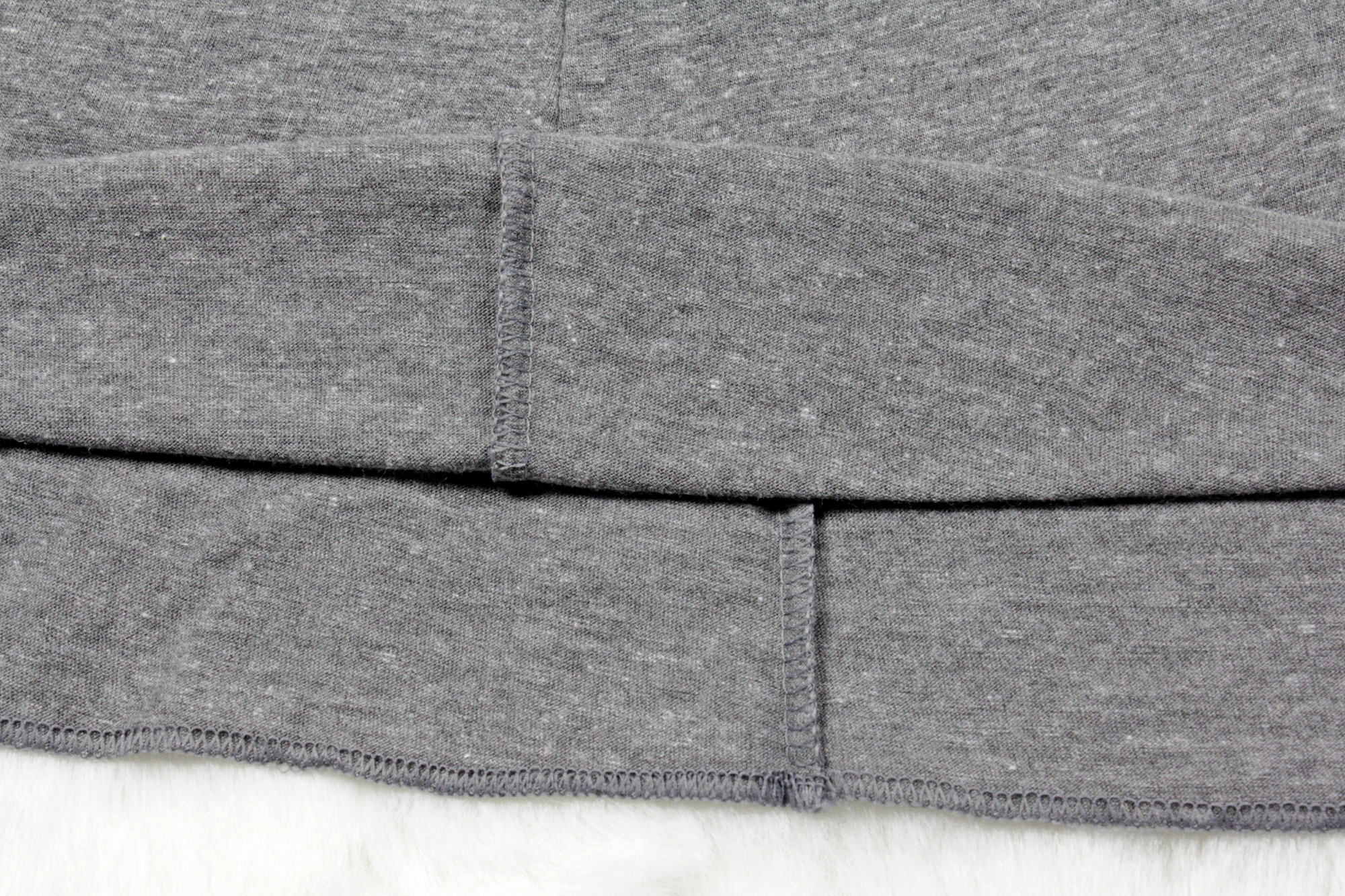 Inside, the two side seams are finished in a standard overlocked (serged) seam. As the garment care tag is at the neckline, there are no tags on the inside seams – which is nice, those side tags can be itchy, especially for workout apparel.