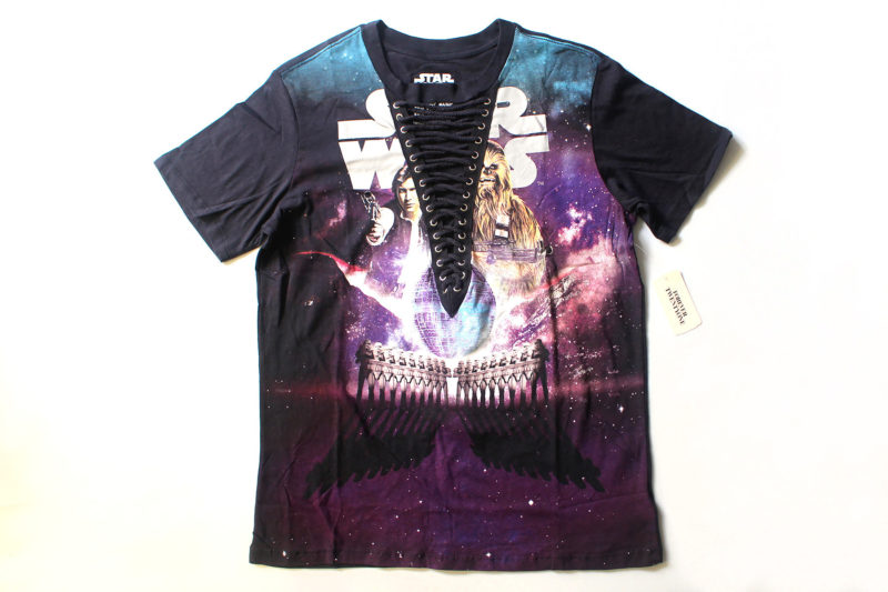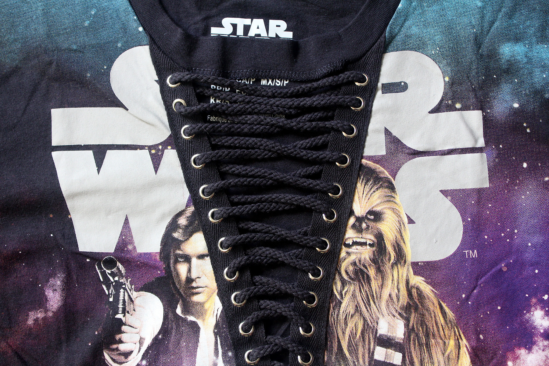 I love t-shirts with a point of difference, and this women’s Star Wars strappy graphic tee from Forever 21 has just that. Women’s Star Wars tees don’t often stray too far from the standard shape and design, so I was excited to see the lacing insert detail on this tee.