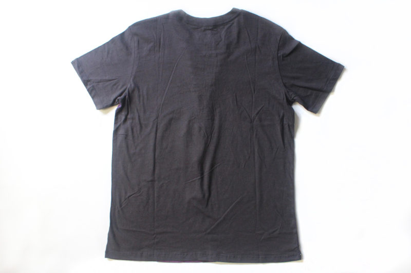 The back of the t-shirt is plain black, with no detail. The t-shirt is made from 100% cotton, ‘exclusive of decoration’. The front is a little stiffer than the back due to the all-over print, as I expected, but not as stiff as some all-over prints I have come across. The front print shows through the back of the fabric a little, primarily where the white/lighter print sections are, due to the fact more ink is needed to print on black (but this is not seen when worn of course). The slightly thicker print is centered around the lacing insert, which helps add stability to the front of the tee, so the insert maintains good shape. The print is very soft on the outer edges of the design (like the galaxy print across the bottom) which keeps the whole shirt from getting too stiff.