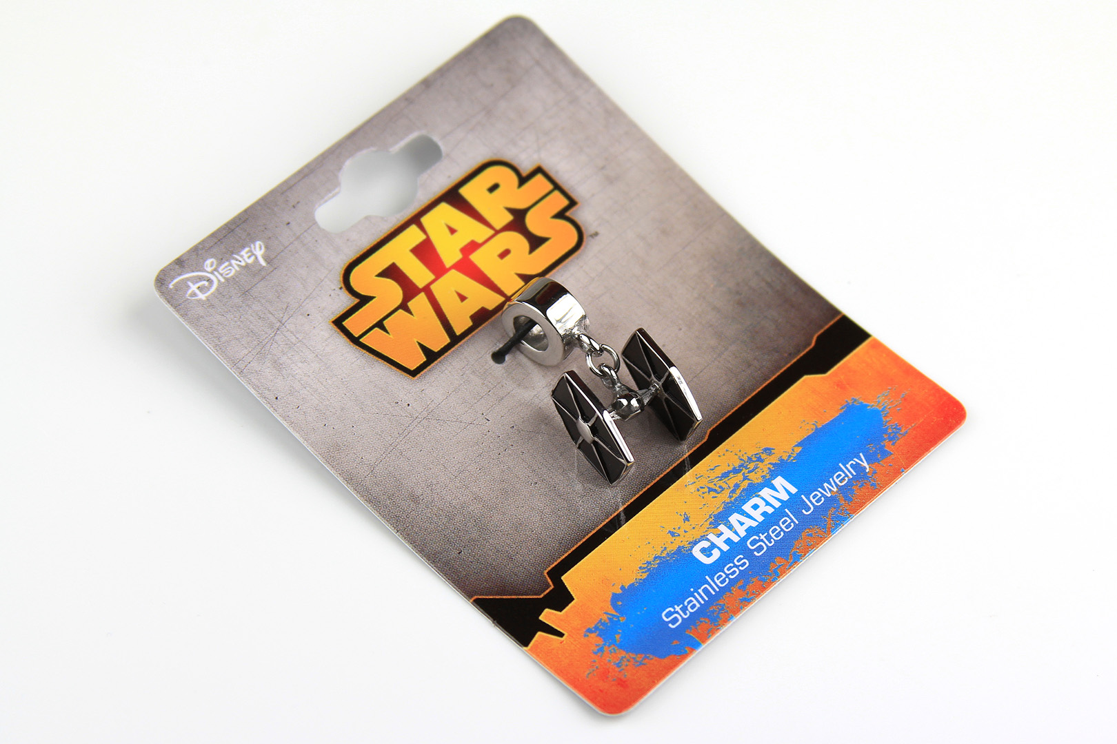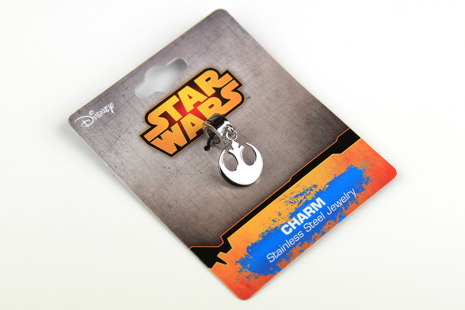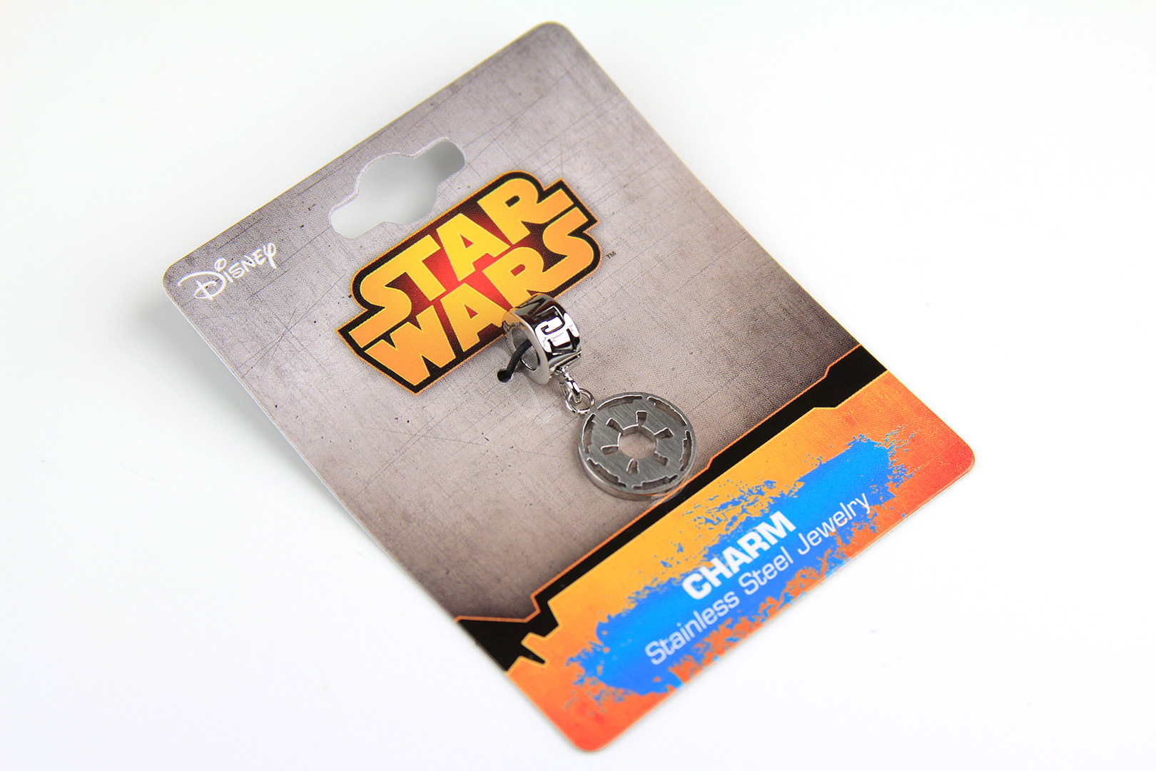 I knew before I purchased them, but the TIE Fighter and Death Star charms lack the Aurebesh text on the hanger ring. I think it’s a bit of a shame, as they stand out from the rest as missing that detail, but they are still fantastic charms. The Rebel logo hanger has ‘Rebel’ in Aurebesh and the Imperial logo says ‘Imperial’, as you would expect. One thing I noticed in person that wasn’t very visible in the advertising photos, is that the Imperial logo charm has a brushed finish, rather than shiny like the Rebel Alliance logo. I am a little curious about why they chose that finish, but it does look neat. I am of course very happy to add these classic Star Wars elements to my charm bracelet, though I hope to see maybe a few more Rebel Alliance charms (like the Millennium Falcon) to balance out all my Imperial ones!