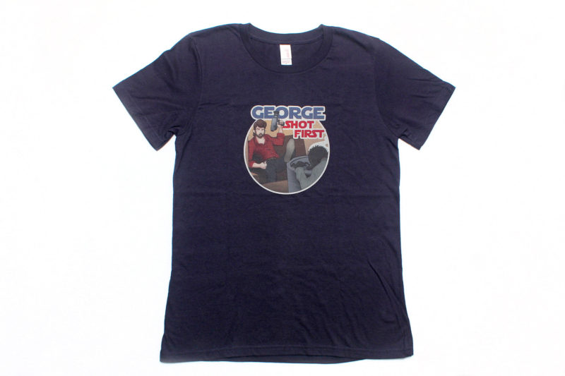 Today’s review features three women’s t-shirts from fan apparel label George Shot First. The label celebrates George Lucas as a filmmaker, writer, and director – with a positive perspective. I spoke with George Shot First co-founder Michael O’Connor about the inspiration and message behind the label – you can read the full interview here.