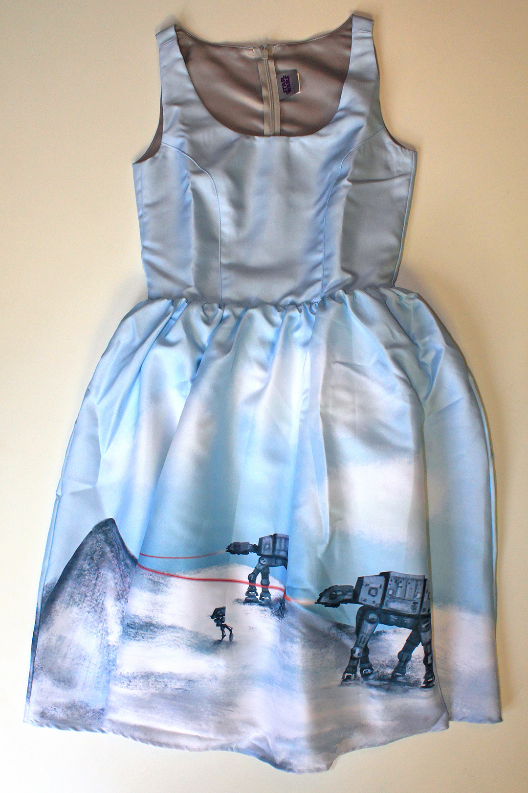 As soon as I saw the preview photo of the Her Universe Hoth pin up dress, I knew I had to have it. In fact, I was so worried about missing out on the amazing new collection from Her Universe, I skipped the J.J. Abrams/Kathleen Kennedy panel and lined up for the exhibitor hall instead – so I could rush in to buy the Star Wars fashion on my *need* list. Judging by the huge crowds at the booth, I’d say a lot of other women did too! When it was my turn at the counter, I was very sad to hear they didn’t have my size of the Hoth dress on hand – so after buying the other items on my list I quickly headed back to my hotel room and ordered one on-line. As I mentioned in an earlier post, it was a little frustrating that I had to pay shipping when I was right there at the convention, but I really didn’t want to miss out. My regular shipment from my US mailbox has just arrived, and I am so happy to finally have my Hoth dress!