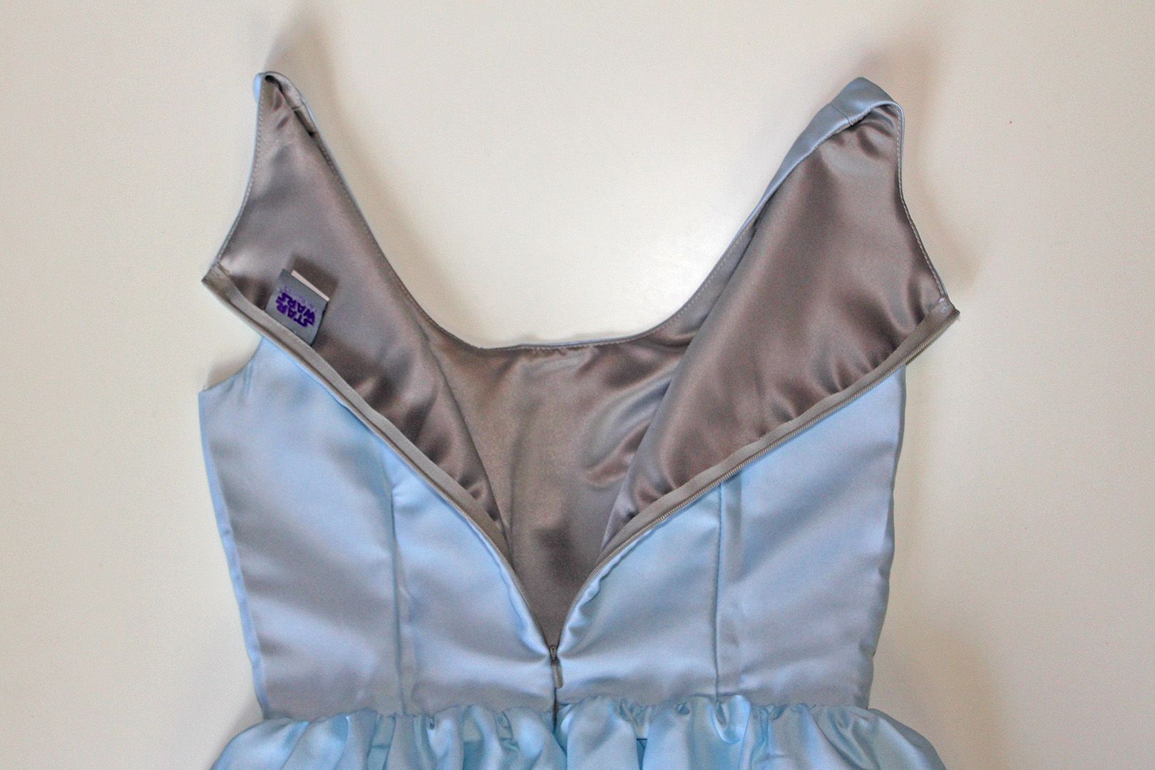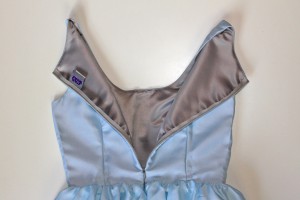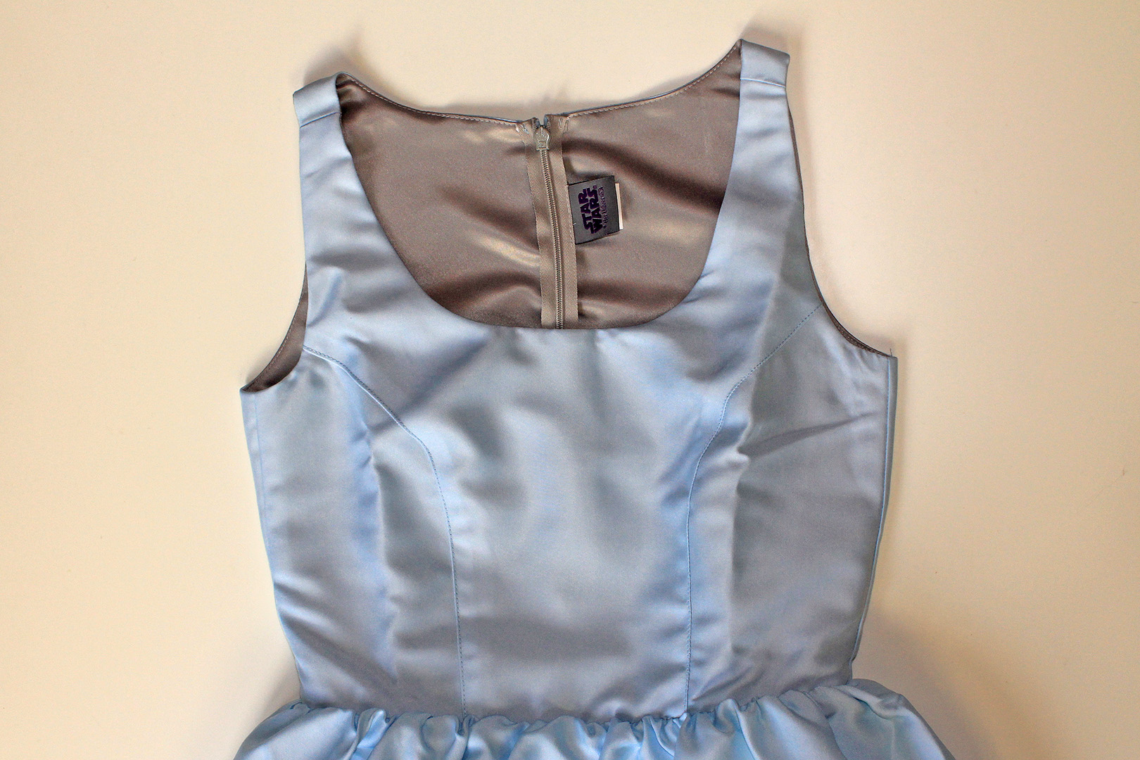 The bodice is fully lined with a grey satin, which reminds me of the AT-AT. The bodice has top stitched princess seams in the front and darts from the waist at the back. The bodice lining joins the skirt lining at the waist seam, all neatly sewn so there aren’t exposed edges. The skirt is lined with white satin, no thin cheap fabric here. The dress closes up the back with an invisible zip. Her Universe had a great sizing chart at Celebration Anaheim, as well as changing rooms to try them on. Inspired by vintage fashion, this dress is made from woven fabric which does not stretch, it is meant to fit snug to the body. Ashley wears hers with a white petticoat underneath – I am quite keen to buy one to wear with my Hoth dress for a fuller skirt option.