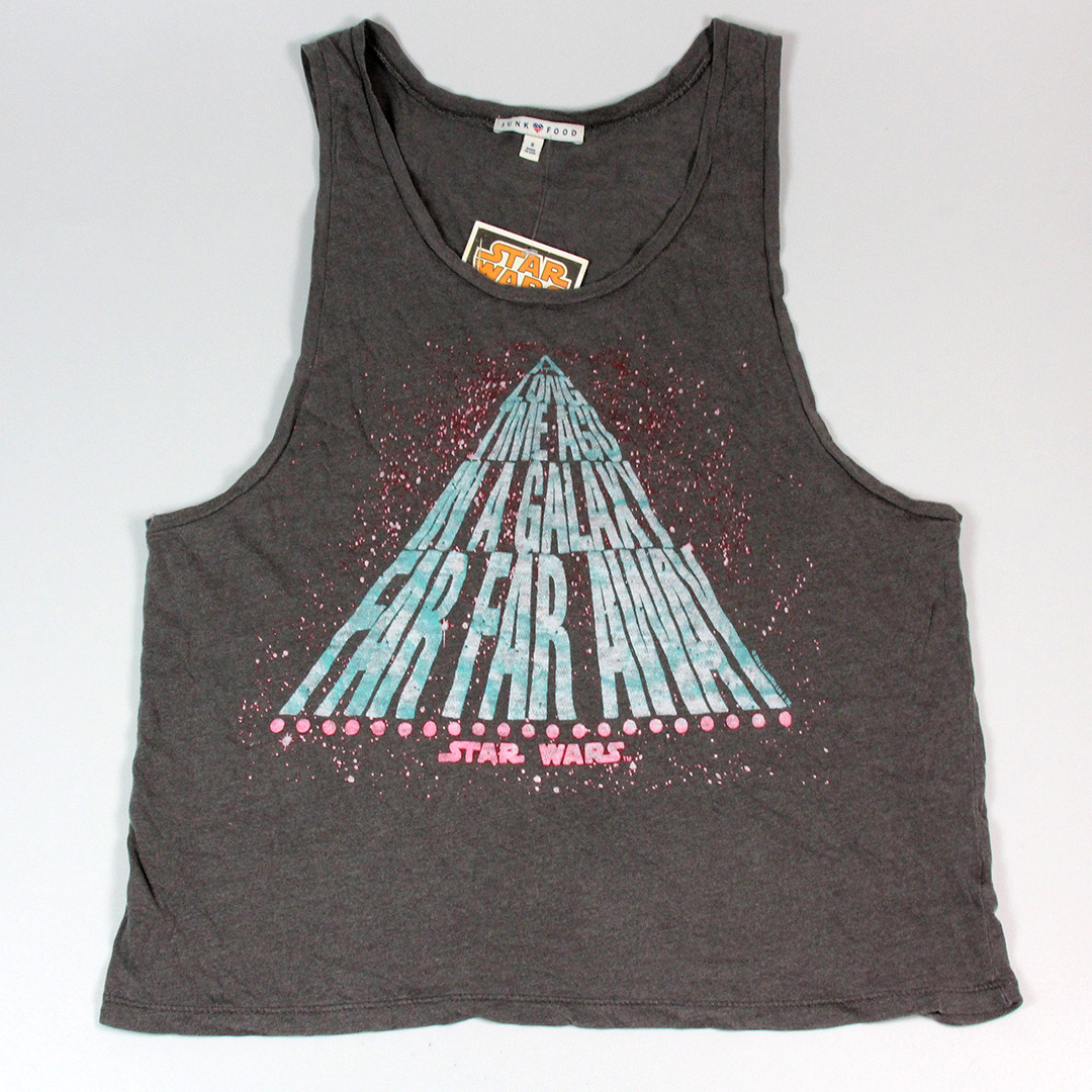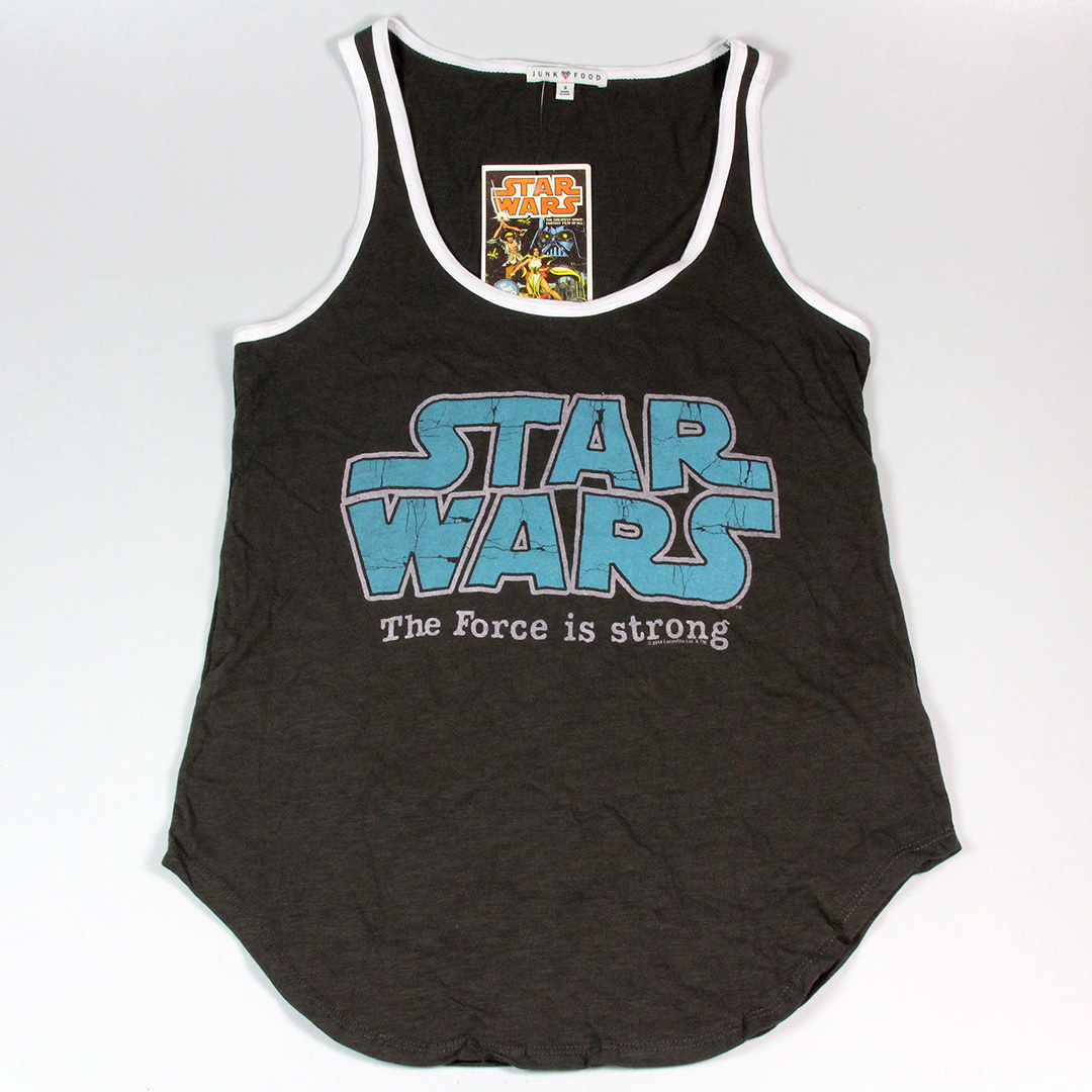 Junk Food Clothing has made Star Wars tops for women for years now, but as they only ship within the U.S. it has been hard for me to shop at a reasonable price. November last year they held a 20% off sale on their Star Wars range, which was a great opportunity for me to pick up a couple of pieces via my mail redirection service. I chose three pieces from their available women’s range at the time (the web store only has five styles currently in stock now). I bought the tops in size small, which are rather roomy – I don’t usually buy xs tops because some fit very snug (and it’s not too hard to alter a t-shirt smaller if desired). If I had the chance to try these on before buying, I would probably have sized down, but the loose fit does compliment the casual vintage styles. With the sale, I paid US$57 for the three tops.