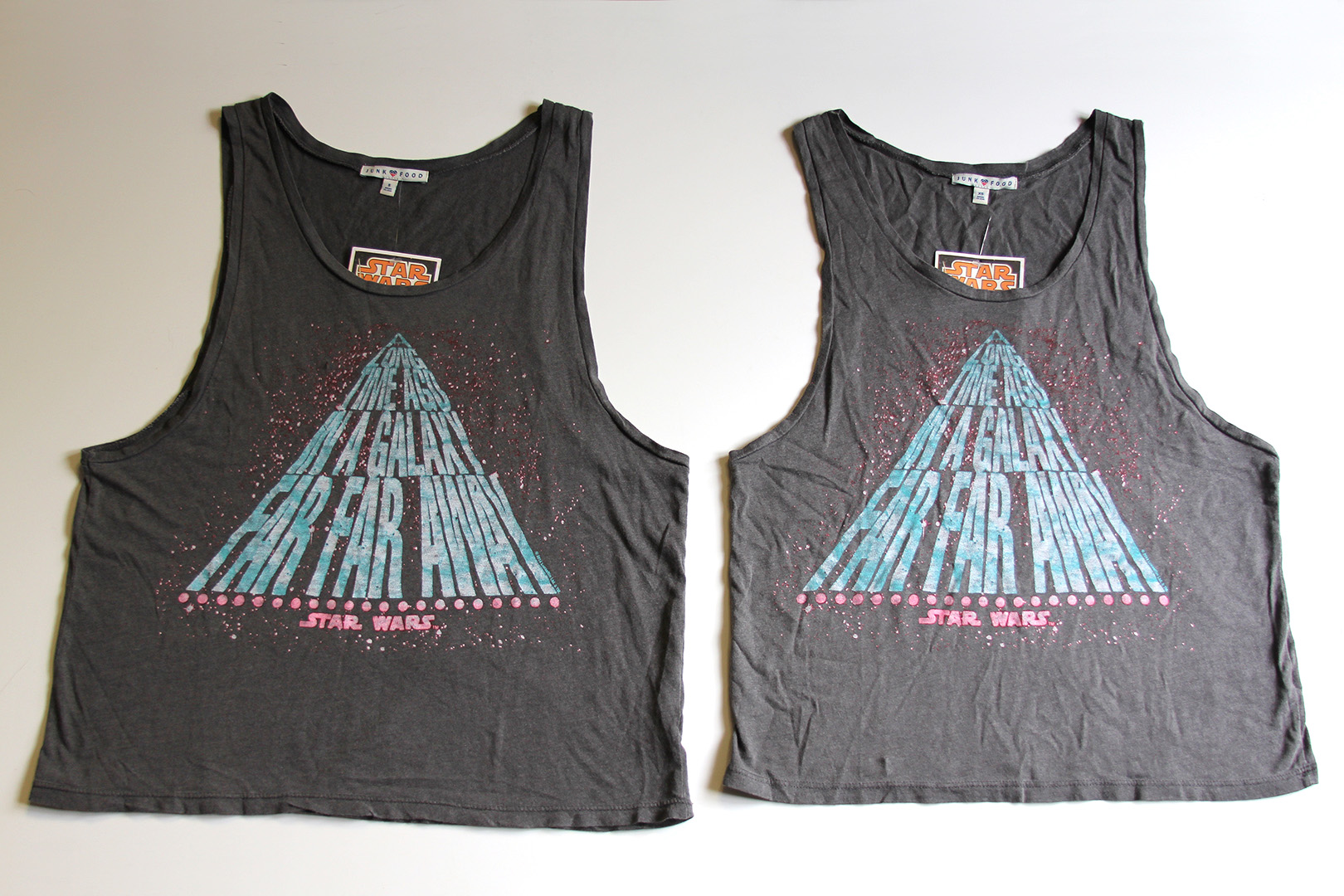 These tops are still available in select sizes at Junk Food Clothing – A Long Time Ago tank top and The Force Is Strong tank top