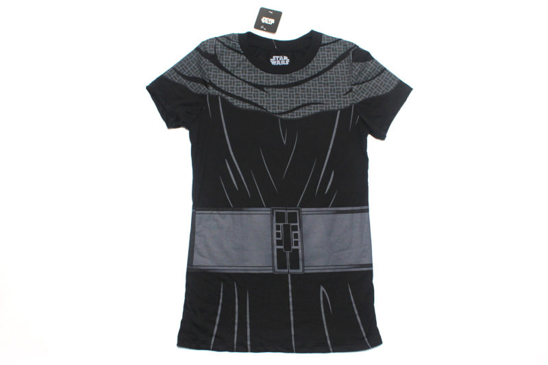 While I love all the new characters in The Force Awakens, I recently noticed that I didn’t own any Kylo Ren themed apparel. What was I going to wear my new Han Cholo Kylo Ren lightsaber necklace with?! So I was excited to spot this women’s Kylo Ren costume t-shirt at SuperHeroStuff – a printed t-shirt made by Mighty Fine, featuring the details of his costume. While I usually prefer apparel featuring the good guys (Rebel/Jedi), I’m sure I’m not the only fan who also loves the new-era bad guy!