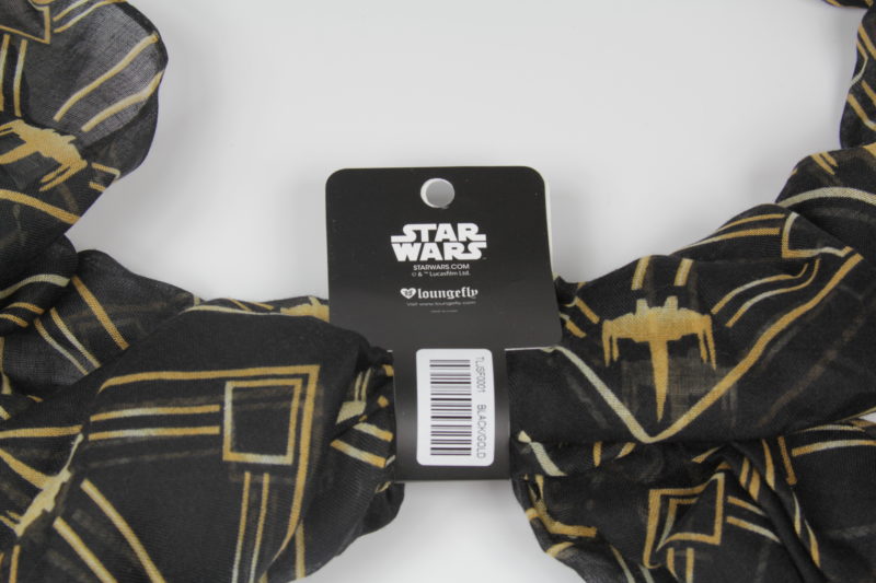 As noted on the tag, this scarf is made by Loungefly. While they are primarily known for their range of handbags and wallets, Loungefly also makes a range of Star Wars accessories including scarves, earrings, and even hair brushes!