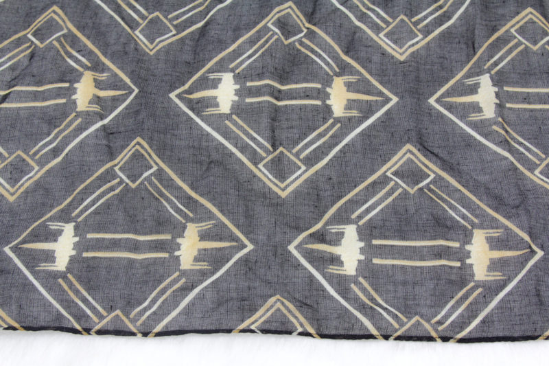 When layered up, you can see the pattern repeated, as the lightweight fabric is see-through. The print isn’t a flat colour – the design has a gradient effect, with yellow fading to white and back again. As the scarf is made from printed fabric (not printed on top), the pattern is the same on both sides of the fabric, there is no ‘wrong side’ – always useful with scarves, as the underside often shows when worn.