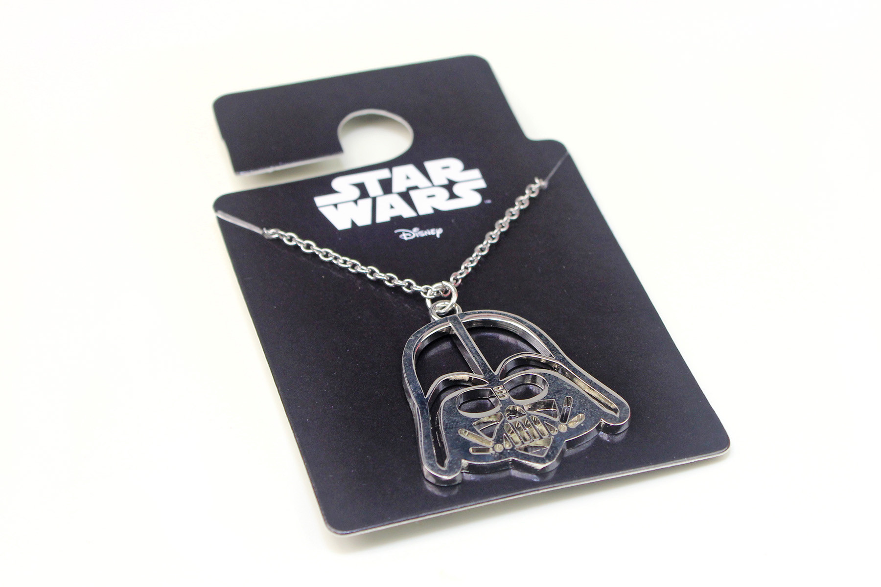 Back in November, Spencers added this new Darth Vader cut-out necklace to their website. While it’s true I already own a variety of Darth Vader necklaces, most are 3D sculpt versions, and I love a new take on a classic idea. Making use of a website promotion, I bought this necklace along with the matching Star Wars logo cut-out necklace.