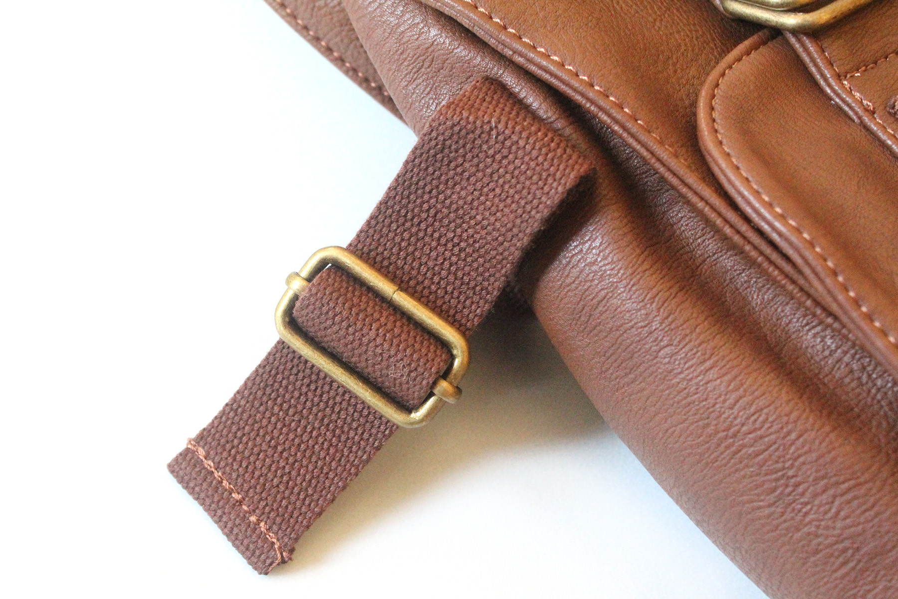All the webbing on the bag is a great colour match to the brown faux leather, so it adds detail without standing out too much. The metal hardware is all antiqued brass-tone in colour, keeping with the style.