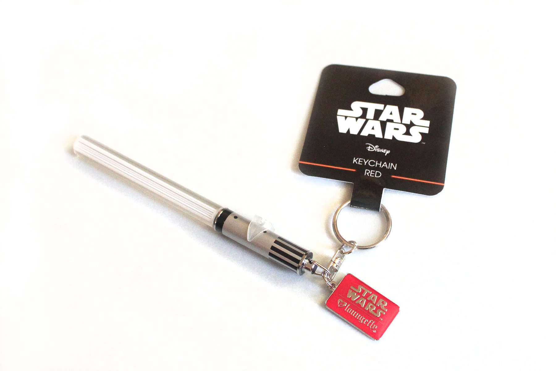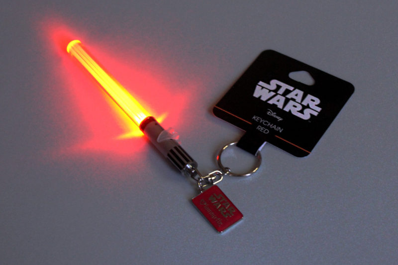 Lastly, the purchase price of the Rey backpack qualified for a free gift, available for purchases over US$50 at the Loungefly SDCC booth – a light-up lightsaber key chain! It comes in three colours – red, blue or purple (you can see all 3 here). I received the red version, which is quite bright when on, even in daylight. The silver coloured hilt has black detail lines, which is similar to Anakin Skywalker’s/Darth Vader’s lightsaber, though the detail is simplified enough to work with any colour blade.