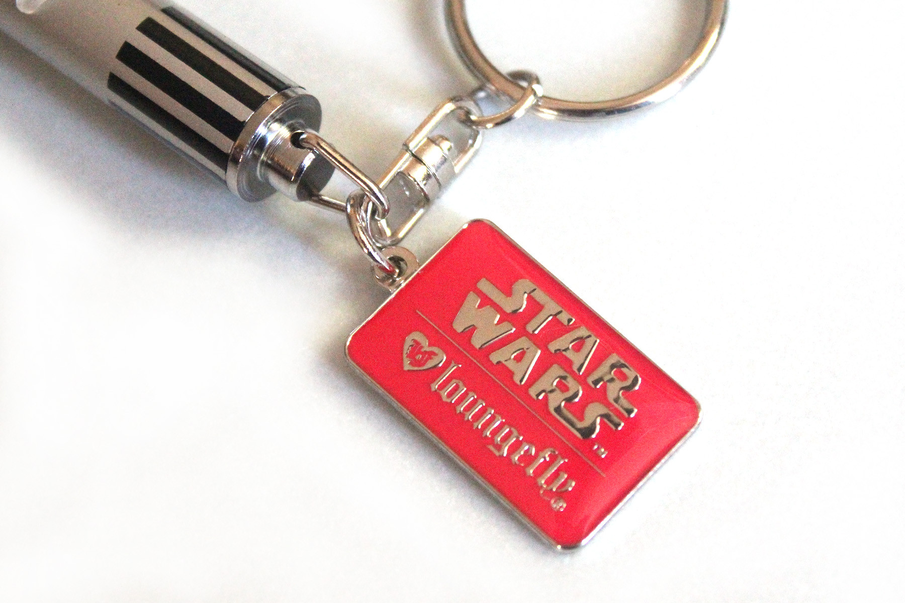 The key chain also includes an enamel Loungefly x Star Wars logo plaque pendant, which coordinates with the red lightsaber, but to my eyes, it does appear more a little more pink. The logo pendant measures approximately 26mm by 18mm, and is stamped with ‘(c) LFL’ on the back. It is a great little Star Wars accessory, so you can carry your keys on a Loungefly x Star Wars key chain, inside your Loungefly x Star Wars handbag… I like coordinating things like that – throw in a Loungefly wallet and coin purse, and you have the full set!