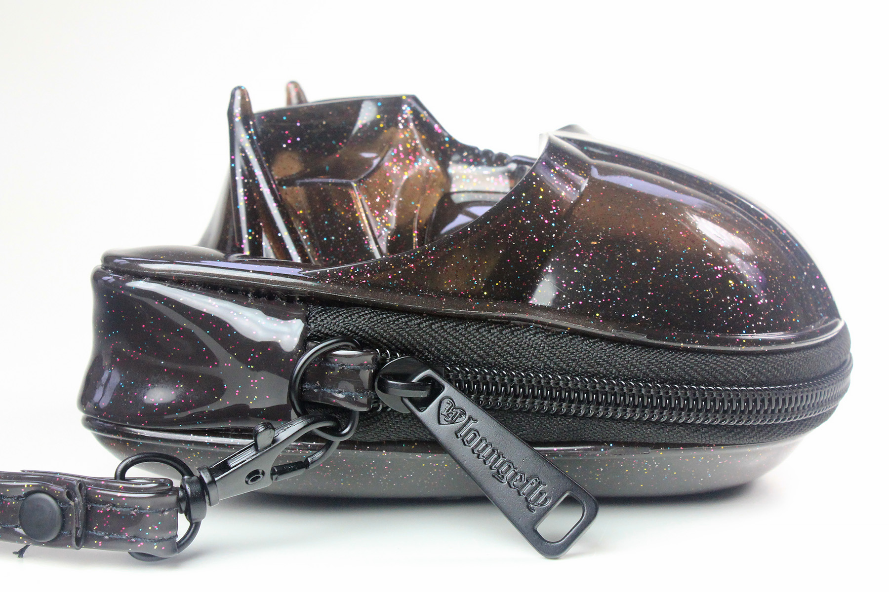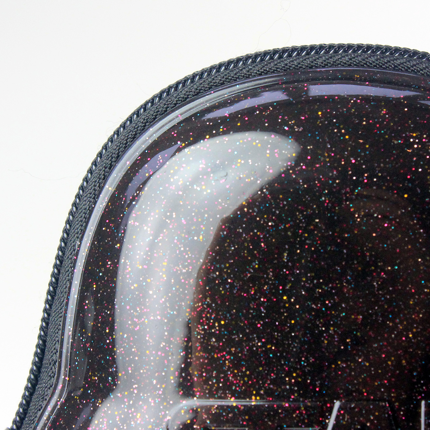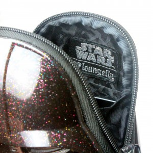 I was really excited to see both the Stormtrooper and Darth Vader variations – the rainbow glitter on Darth Vader is a fun idea. I thought the black base might diminish the glitter affect, but it serves as a great contrasting backdrop. The glitter is blended into the silicone, rather than applied to the surface. The top layer is translucent, so there’s a depth to the glitter layer that is very pretty. This coin purse is made from a flexible 3D moulded silicone.The visage of this Sith Lord is undeniably a Star Wars icon, and the glitter is a playful variation for a fashion accessory. It uses the same sculpt as the regular black coin purse (and enlarged for the Vader crossbody bag), meaning it has an identical level of detail accuracy to these related items.