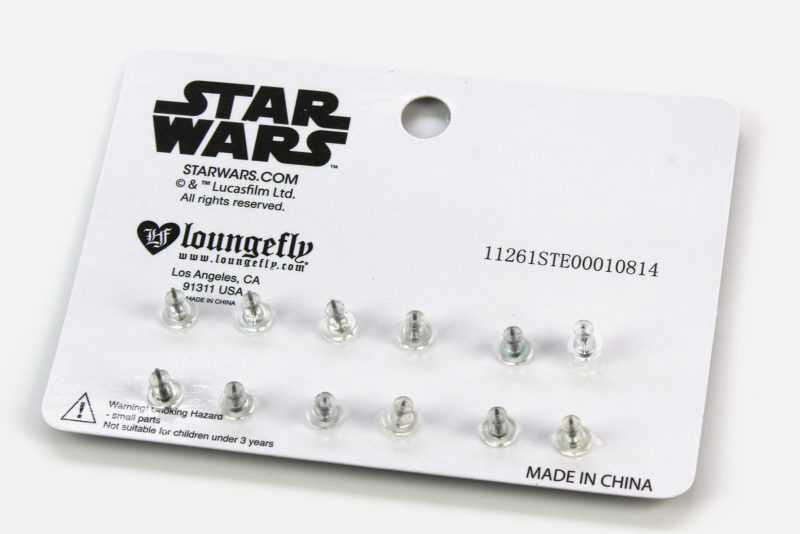 While searching for the Darth Vader coin clutch, I came across this set of stud earrings also by Loungefly on ebay. Until recently I didn’t know they made jewelry, as the brand is mostly known for handbags and wallets – my recent Hot Topic purchases of bows and necklaces are made by Loungefly too. I don’t have as many Star Wars earrings as I would like to, and this set had a good range of characters.