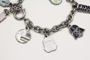 While I certainly love collecting Star Wars jewelry, I tend to wear bracelets more than rings, so I’m always on the lookout for new styles to add to my bracelet collection. I spotted this Love And Madness x Star Wars bracelet on eBay late last year – and needed it! I paid US$16.95 – a great buy, though I am not sure what the original retail price was. From what I can find, this bracelet was sold by Claire’s, a UK-based accessories store.