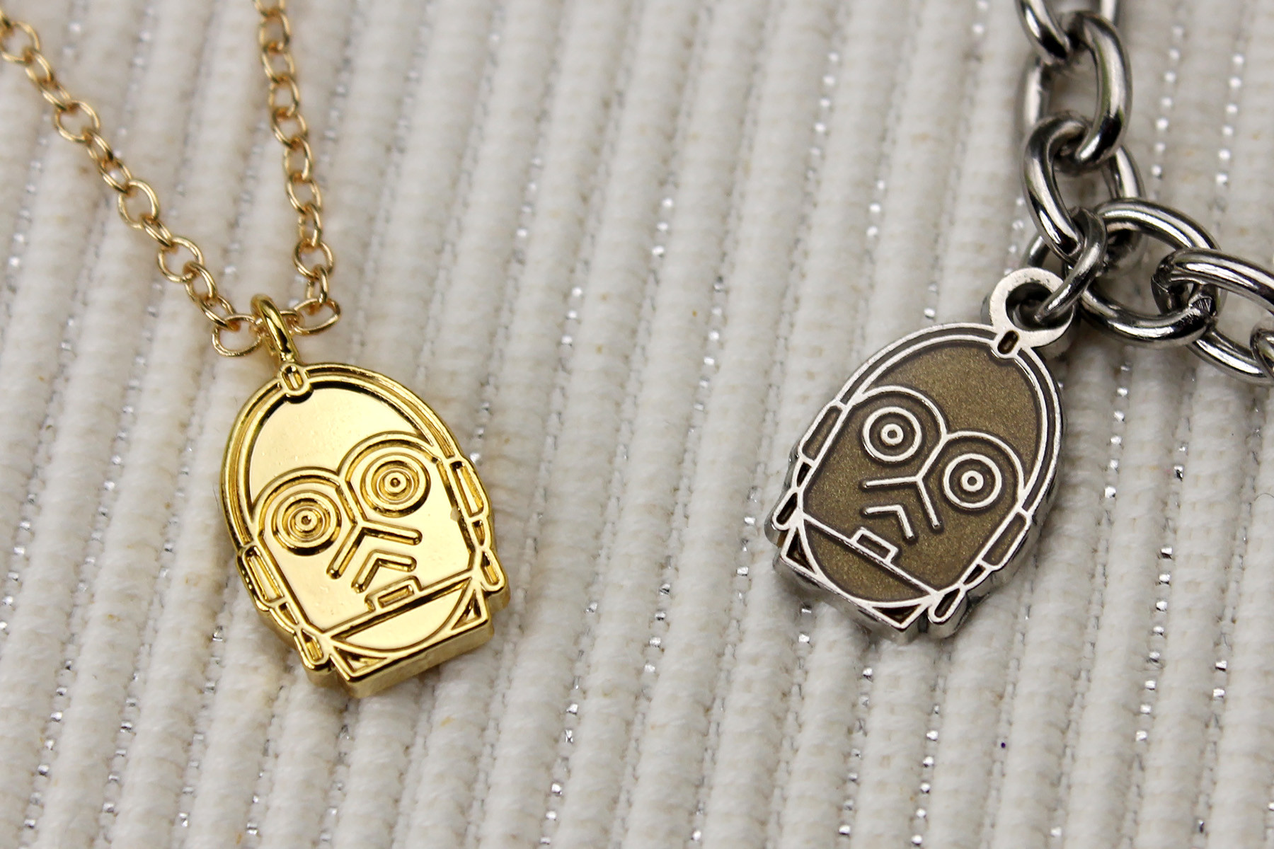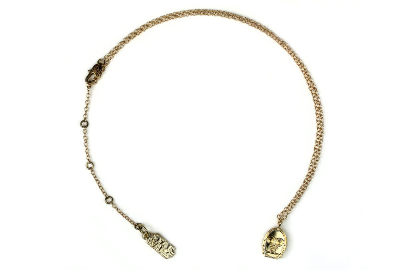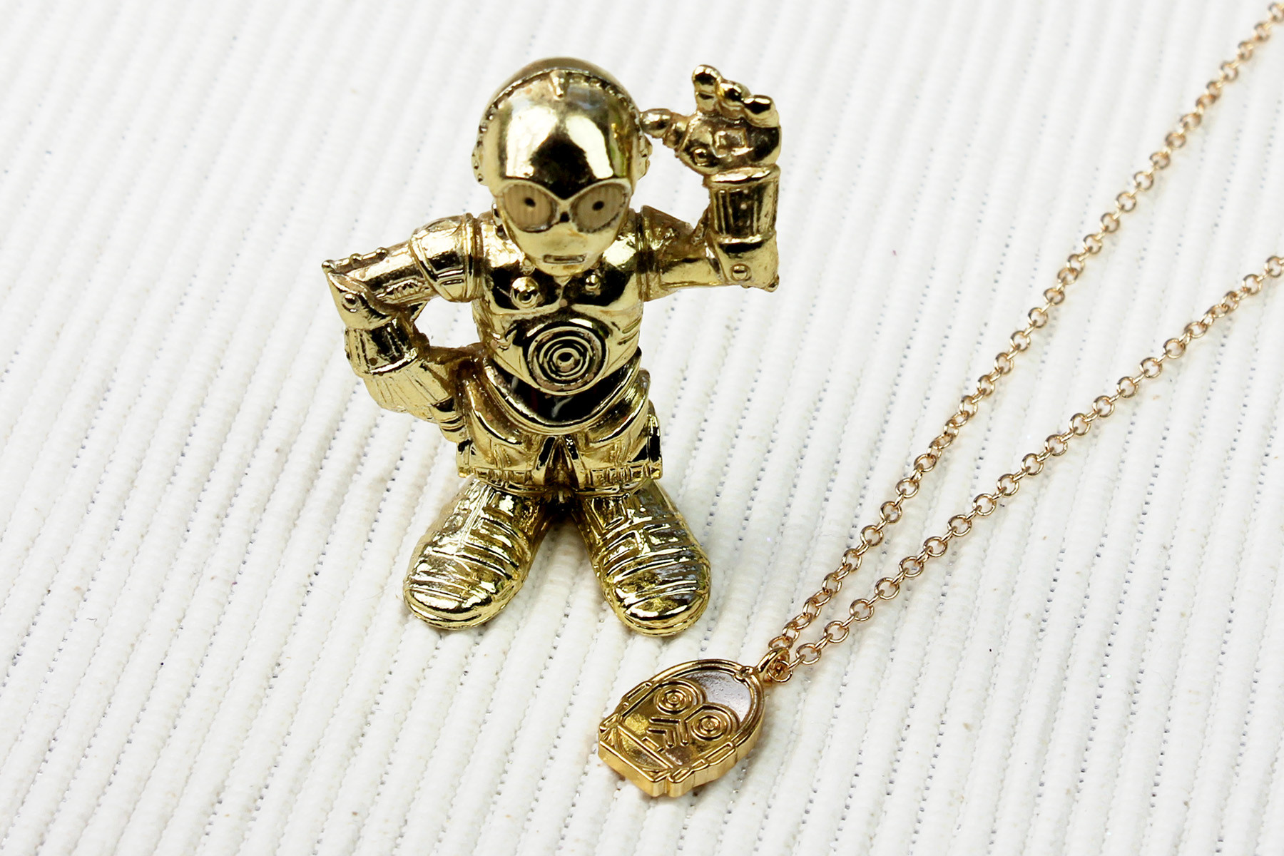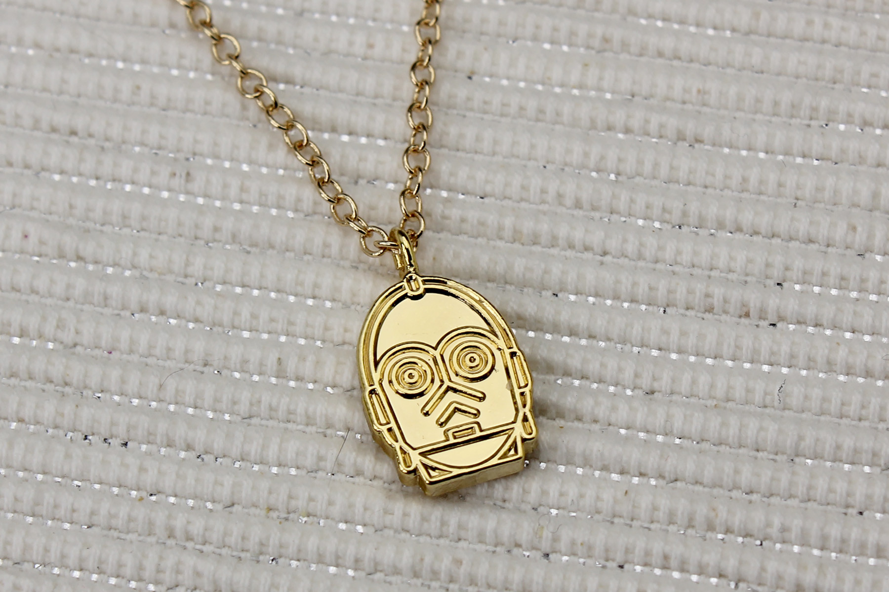 Today’s review features the C-3PO neckace by Love And Madness. While R2-D2 is a common theme for Star Wars jewelry, his faithful friend often gets a little overlooked, so it’s great to see a necklace featuring just C-3PO. This lovely little gold-tone necklace captures the protocol droid perfectly, and fits in your wardrobe as a wonderful delicate addition to any outfit.