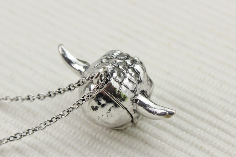 The pendant sculpt is absolutely stunning – it really captures the calm wisdom of the character. There are some horrendous Yoda jewelry sculpts out there, but Love And Madness have really excelled with their version. The Jedi Master is instantly recognisable, I can almost hear his voice looking at this pendant. The detail is accented with black antiquing, which shows off the sculpt even more. The tips of the ears are pointed, but not sharp.