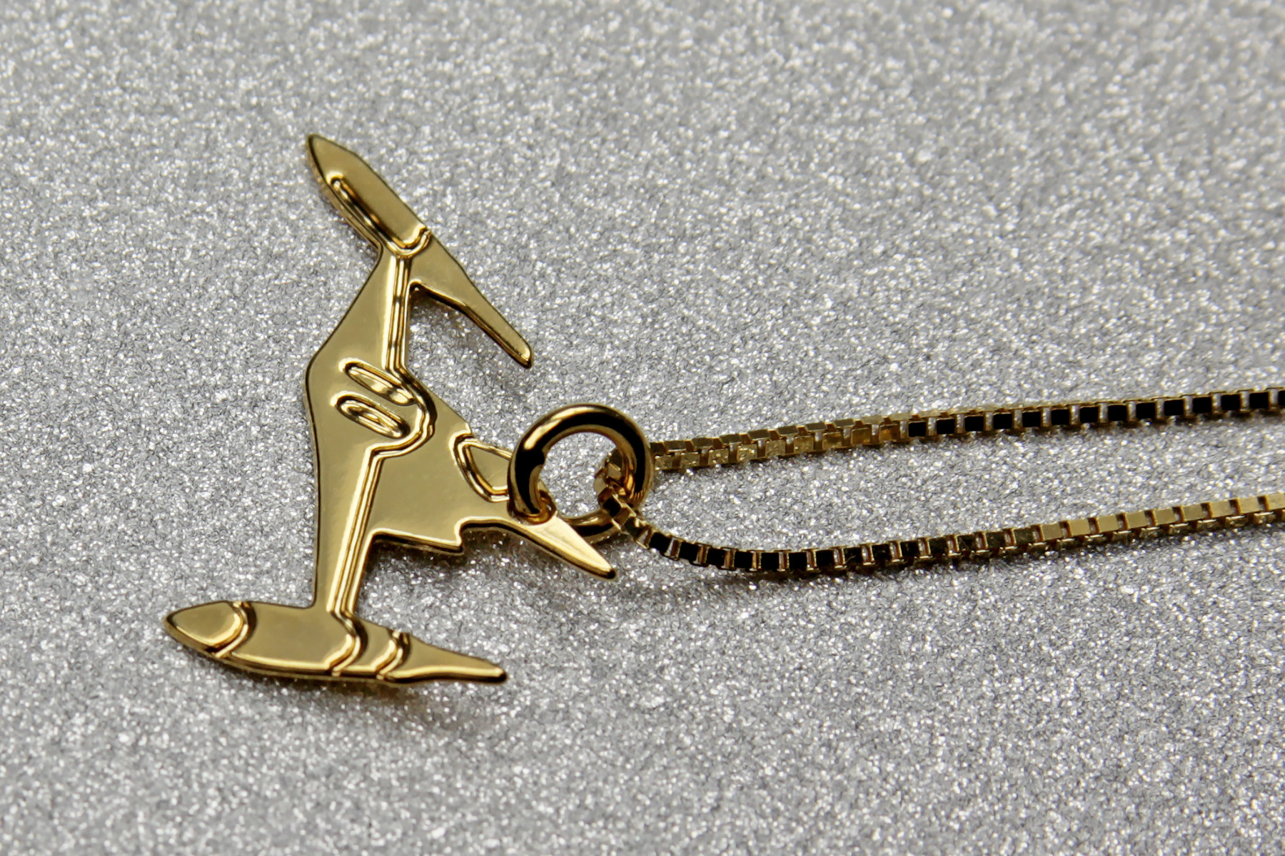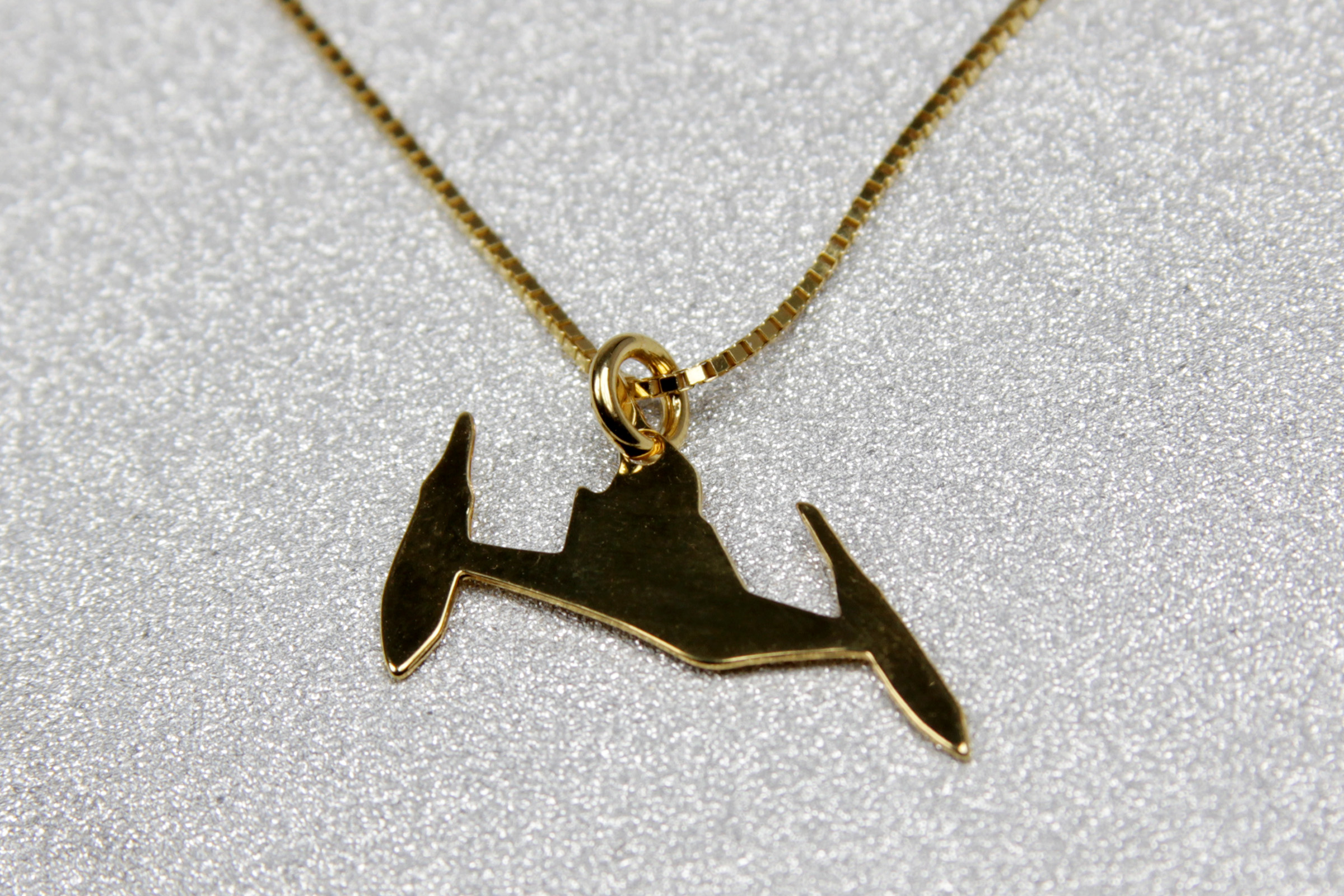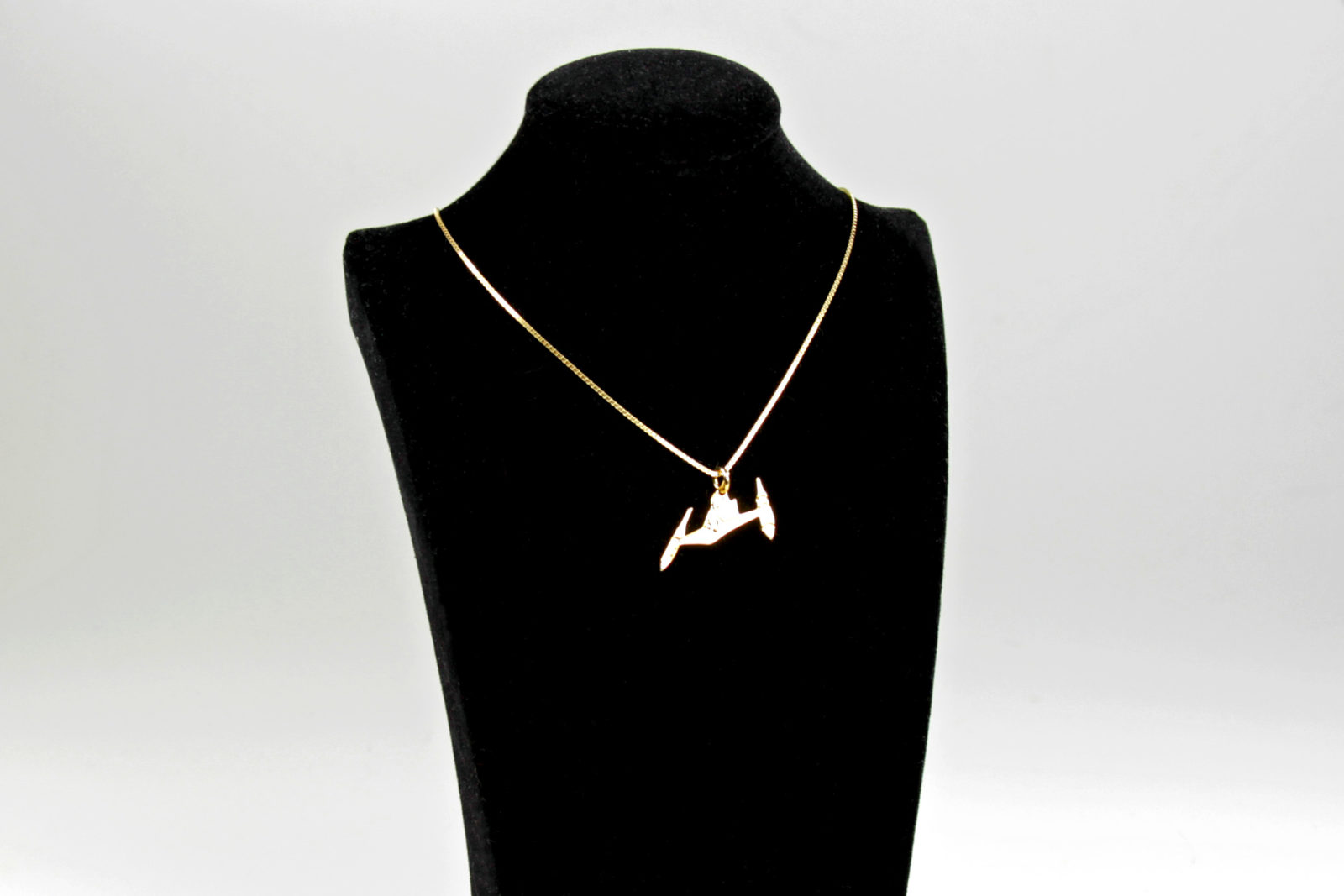 Necklace with Naboo Fighter pendant. 24ct gold plated sterling silver, 24ct gold plated brass. Nickel-free. Made in Germany. Chain length: 45 cm.