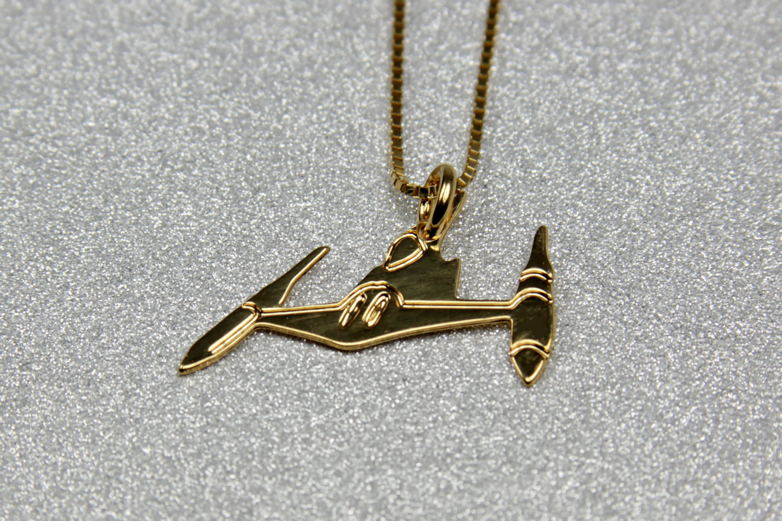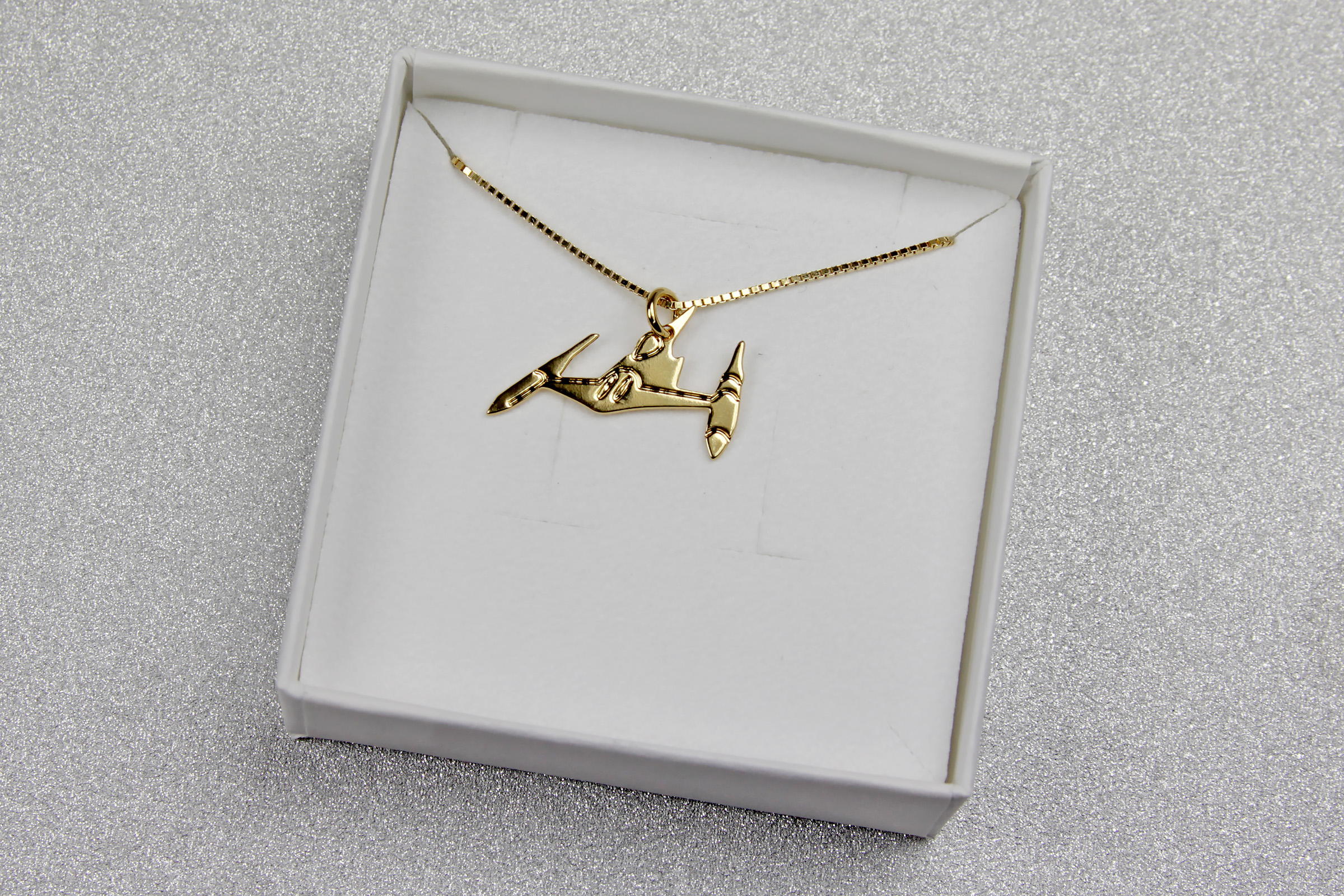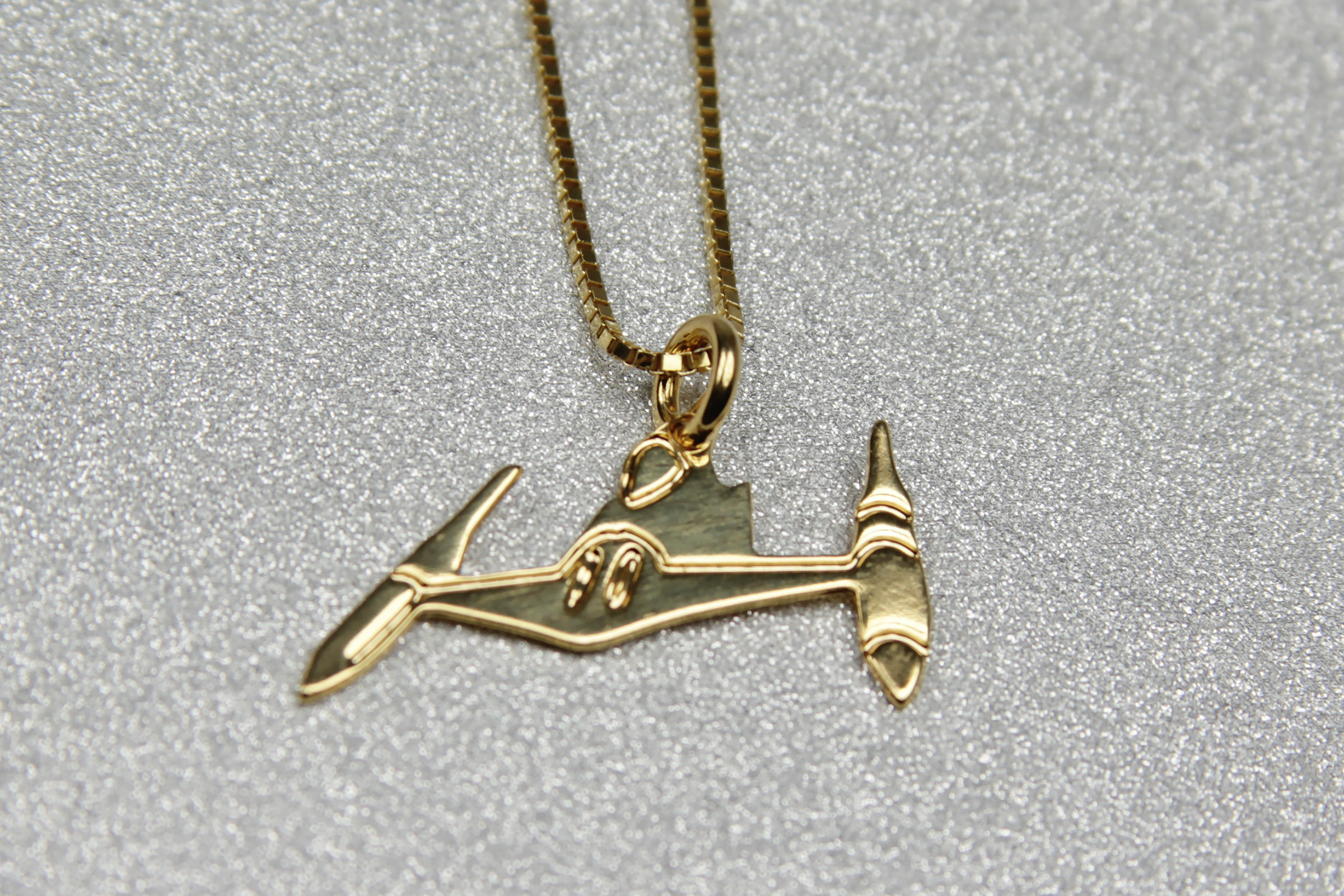 Necklace with Naboo Fighter pendant. 24ct gold plated sterling silver, 24ct gold plated brass. Nickel-free. Made in Germany. Chain length: 45 cm.