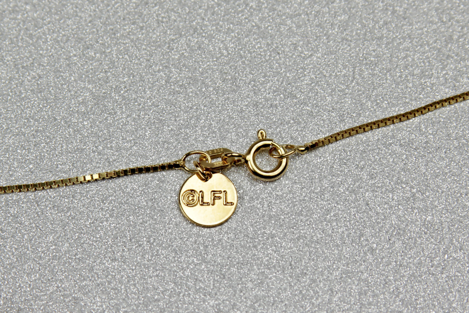 The chain closes with a standard circular jewelry clasp, which is nice and secure. The necklace also has a small gold-plated disc pendant near the clasp, with the standard ‘©LFL’ mark on one side, as this is licensed jewelry item.